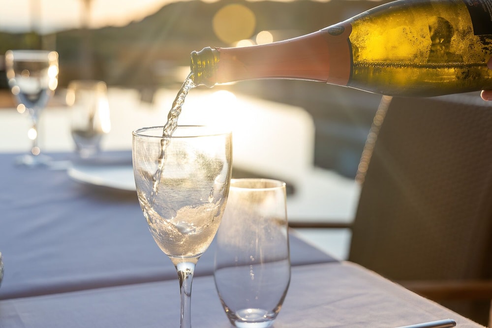 This is an absolutely wonderful hotel in an exquisite location. Everything about our stay was perfect. The only possible thing to complain about was the orange juice at breakfast, which seemed to be something akin to North American Tang. Juice aside, the breakfast was wonderful with lots of choice, and different delicious items each day. The staff were wonderful. The location and view are breathtaking. And there is free parking in the beach area on the edge of town right next to the hotel. It is possible to get in and out of the parking while entirely avoiding the narrow streets of town. This is the kind of hotel that makes one fall in love with Greece and want to stay forever.