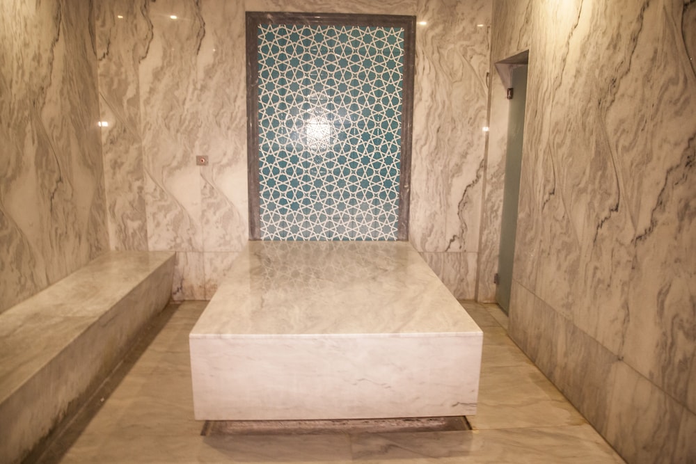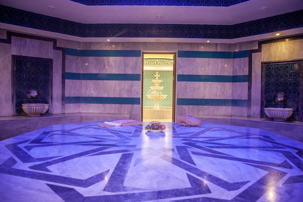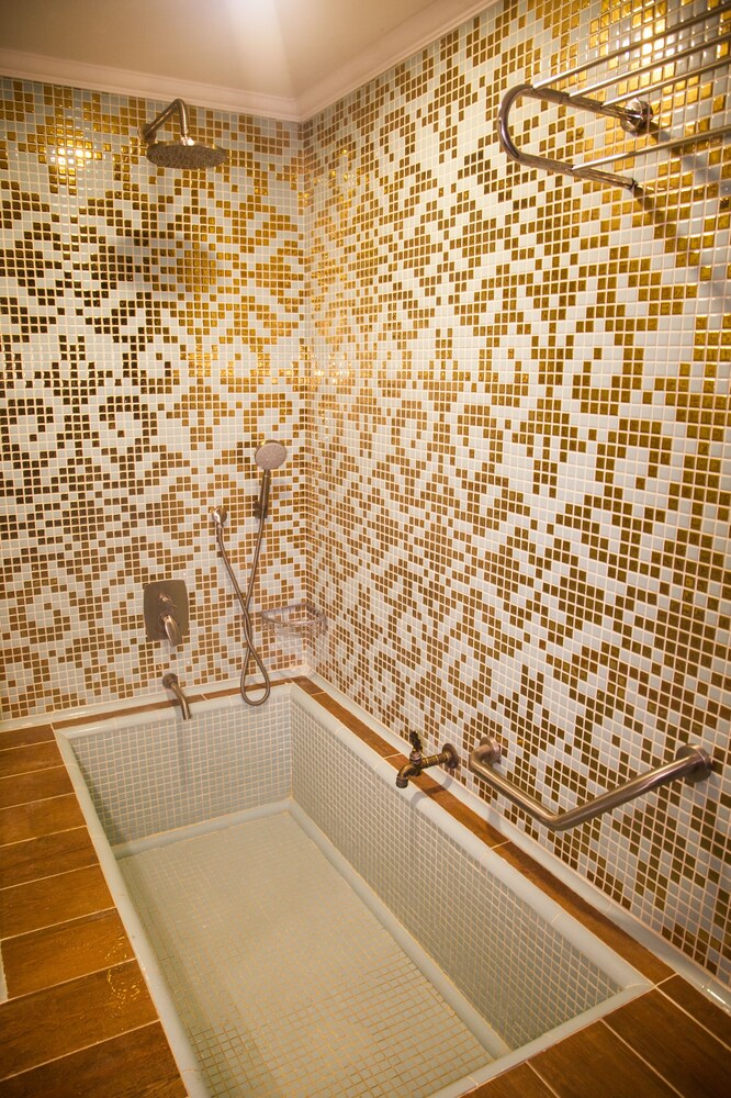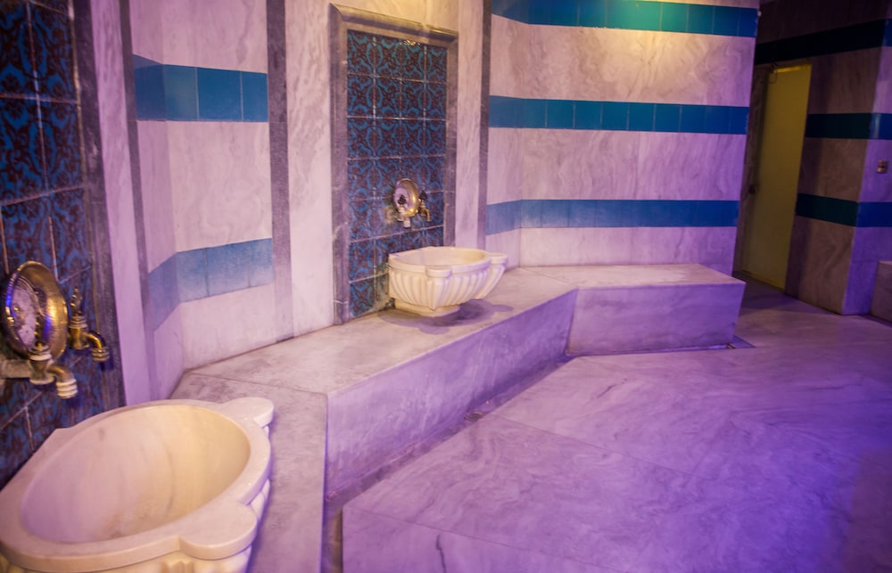 İçinde havuz olan banyo büyük. Sıcak kaynak suyu akıyor. Şebeke suyu ile de duş alabilirsiniz lakin duş başlıkları kireç tutmuş. Şu az akıyor. 1 tane WC kağıdı koymuşlar. 1 tane daha koysalardi ne olurdu diye düşünmekteyim. Yanınıza saç kurutma makinası alin. Seyrek uzun sacliyim. Min 30-35 dakikada kurutabiliyorsunuz :) havuzu kullanırken her yer su olduğu icin işletmenin banyoya kesinlikle çekpas koyması lazım.