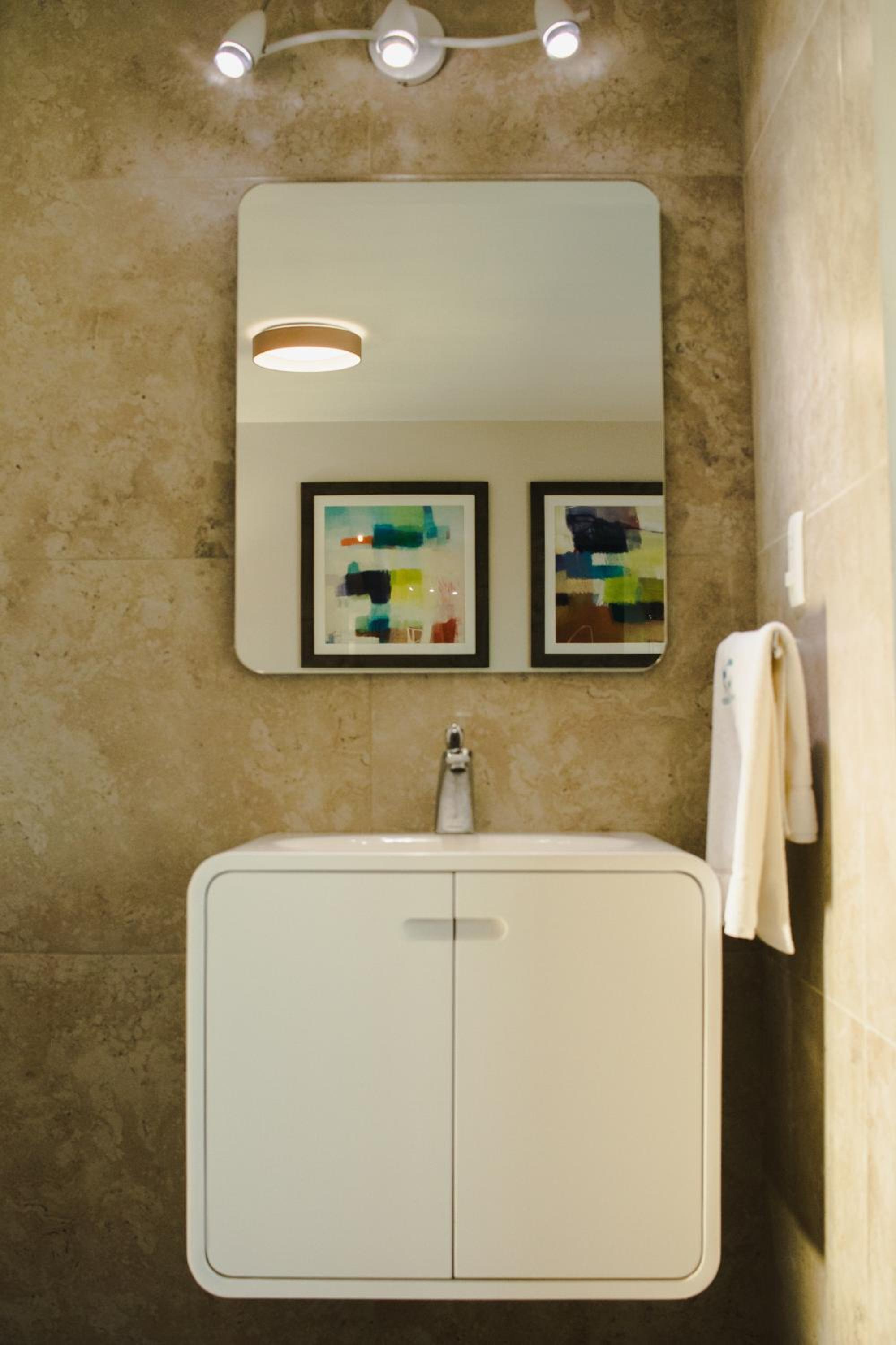El baño bastante restringido y en el cuarto poca ventilación y luz natural