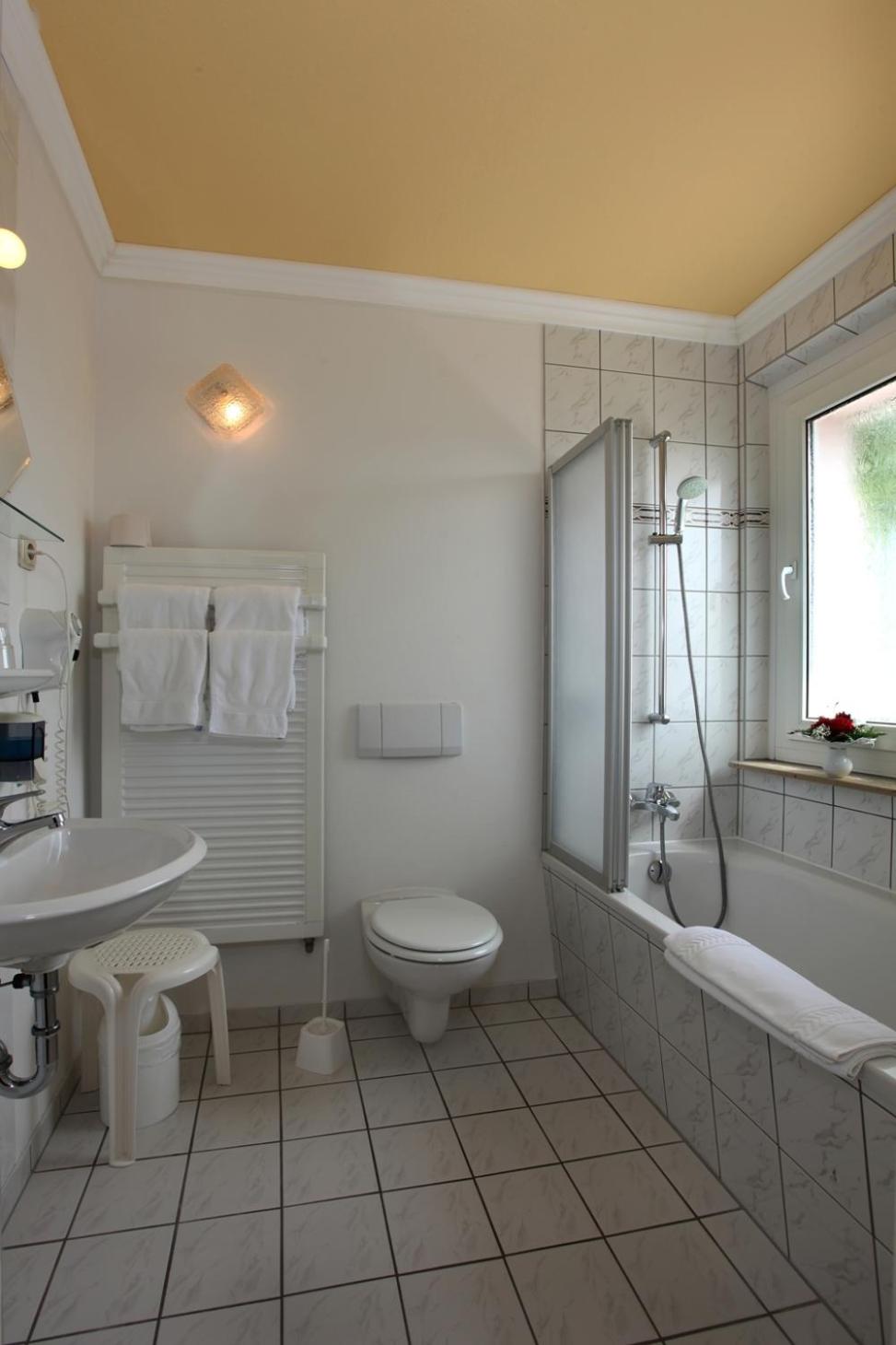 Angesichts der Größe des Bads ist der Hocker eher störend. Ein Flasche Gratiswasser wäre schön. Der Parkplatz ist zwar kostenlos, aber etwas unübersichtlich und z.T. unbefestigt. Das Frühstück fand ich eher durchschnittlich.