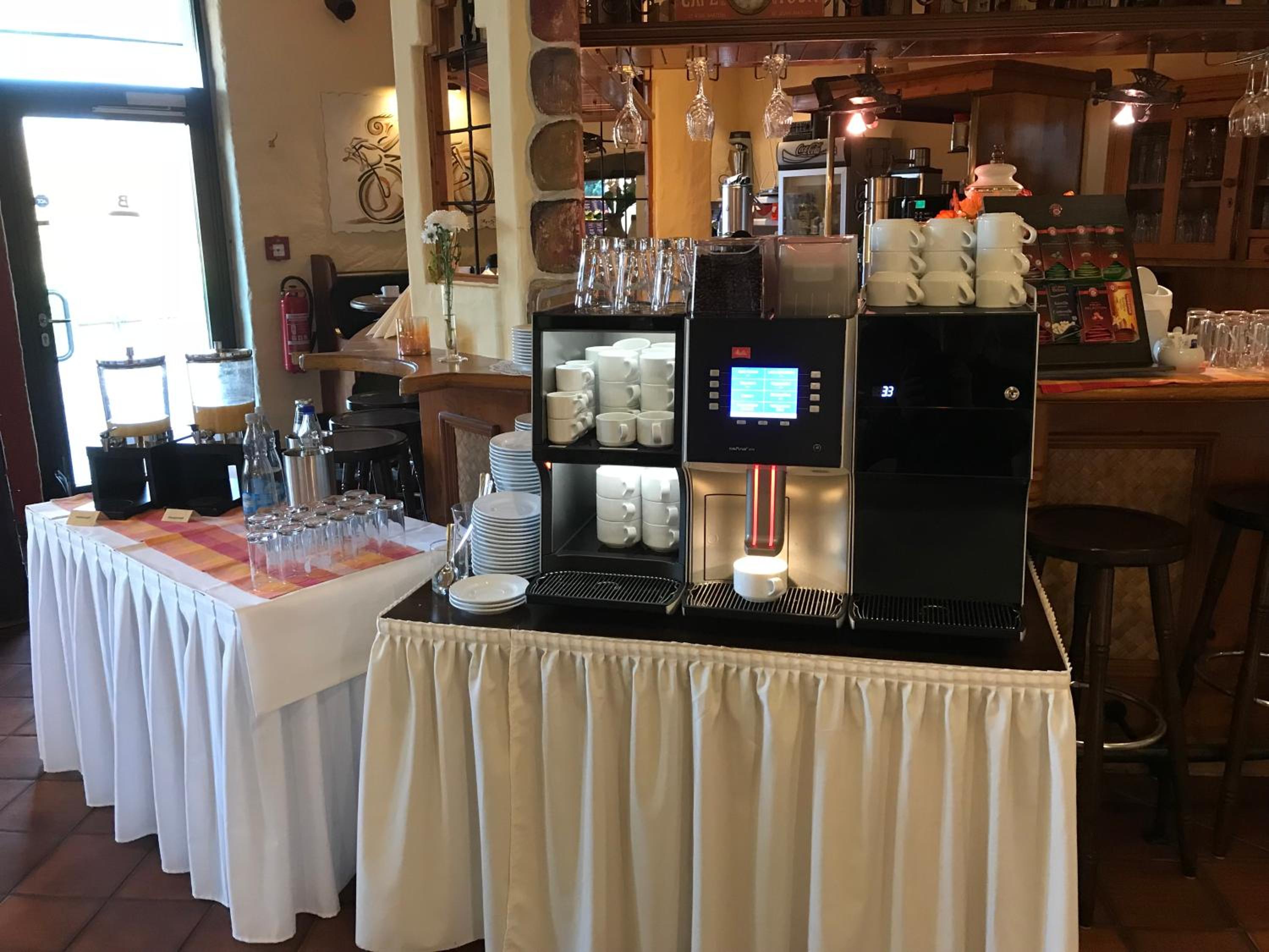 Der Kaffeeautomat beim Frühstück... für Kaffeespezialitäten ok, aber Filterkaffee ist wünschenswert.