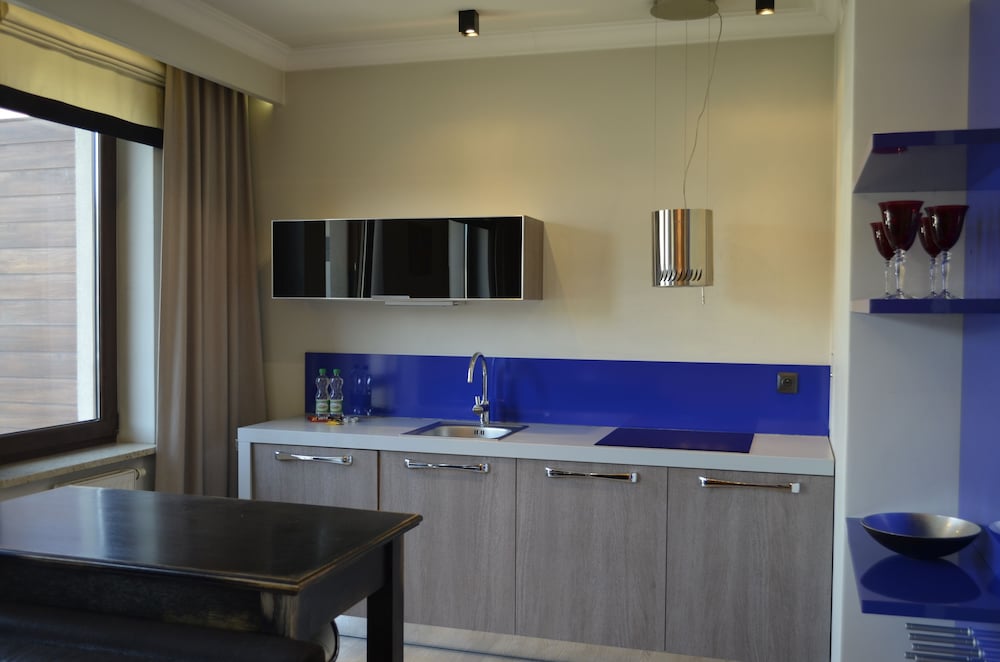 It's an apartment with cutlery but no kitchen. Quality is so-so and price was very very high (had a 5 star hotel in Warsaw for the same price!) probably due to last minute booking. Very convenient for Camerimage. Train station was only 15mn walking distance, no need for taxi at anytime.