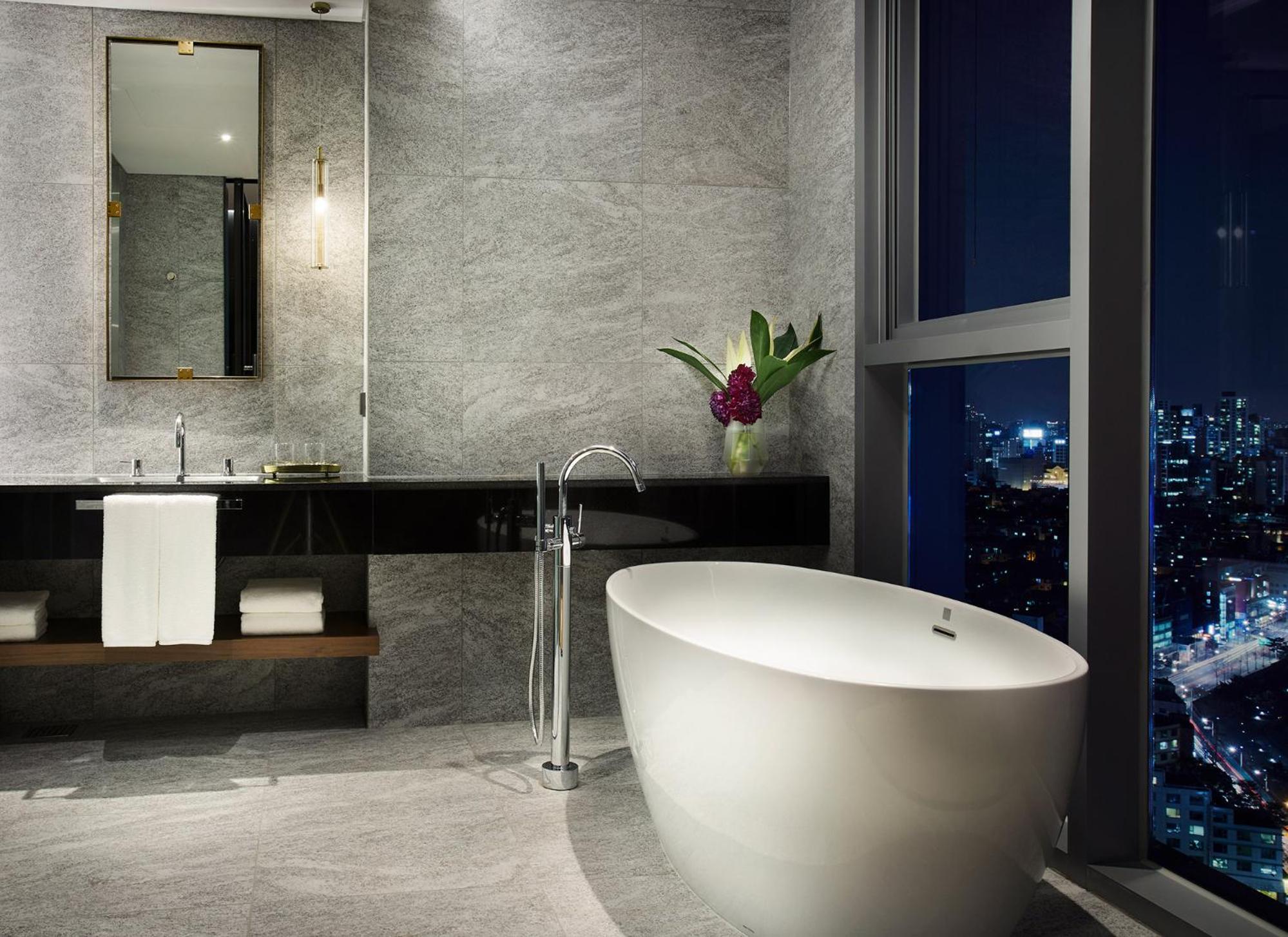 Each room at L7 Gangnam is designed with floor-to-ceiling windows, providing stunning views of the city. Guests can enjoy amenities like a flat-screen TV, safety deposit box, and a coffee maker for a relaxing stay.