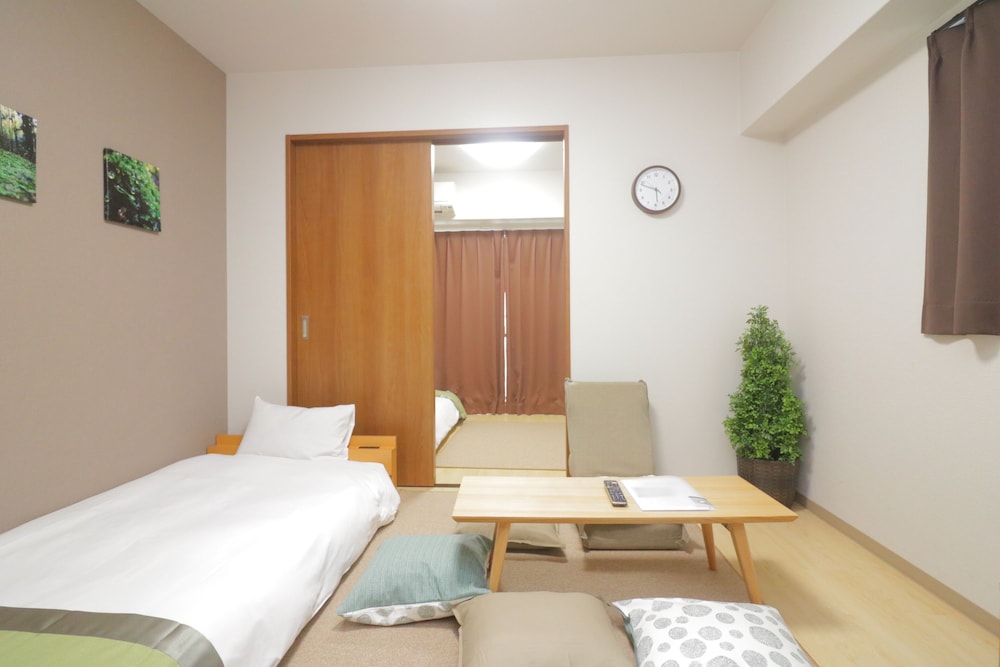 The direction to the hotel provided is misleading. Call cusromer service to find the location but the staff cannot speak english and request to email to them :(( when we lost the way. Well equipment room (include pantry and washing machine) but the mattress is thin/not provided for the two piece beds. Opposite a huge 24hrs suppermarket. Few stations are walkable distance (20-30minutes).