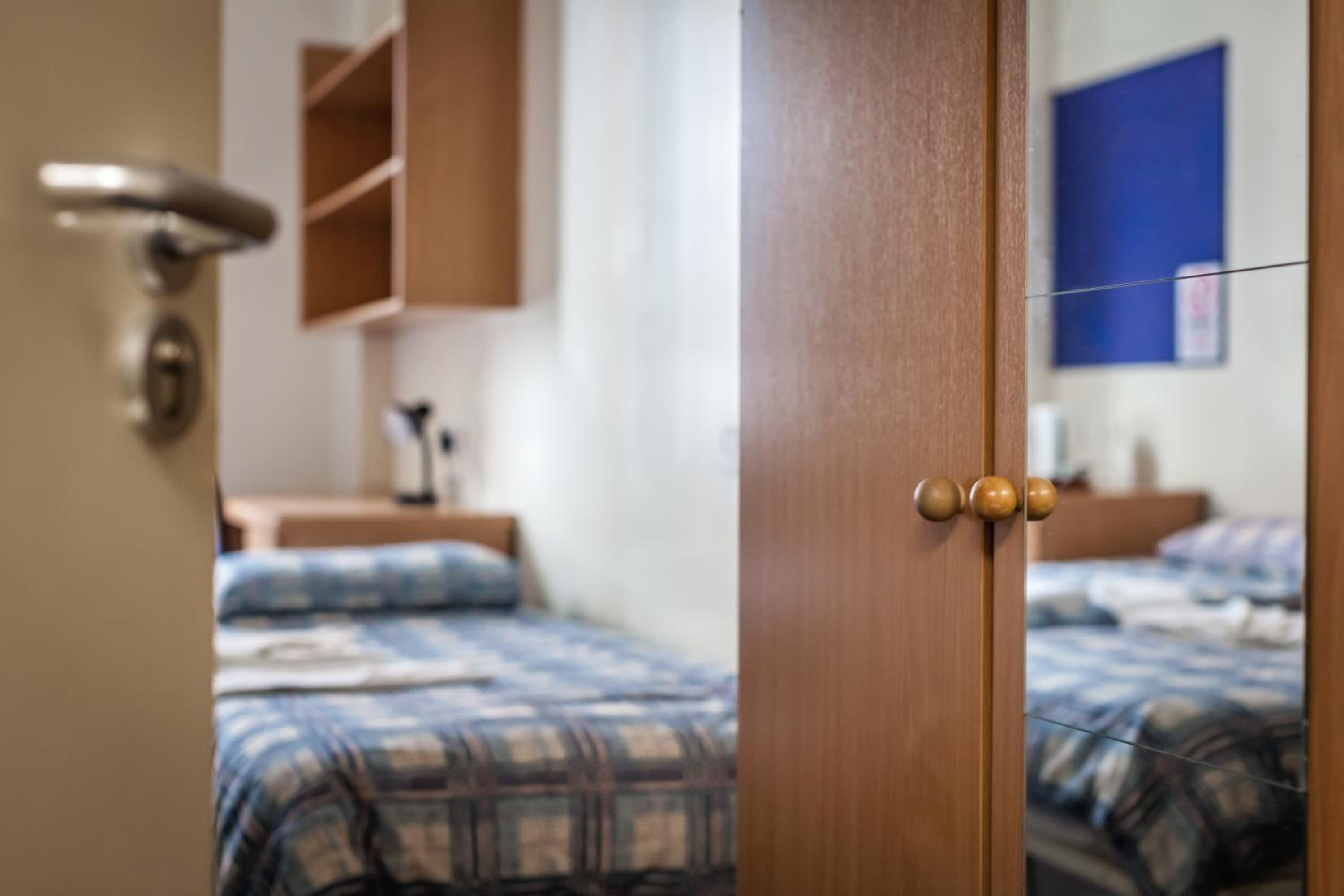 El alojamiento es una residencia para estudiantes, realmente sucia, vieja. El baño es muy pequeño, olía a humedad y estaba muy sucio. La ducha es muy incómoda, Sin espacio, con la alcachofa fija y constantemente se escuchan las cañerías. La habitación es ruidosa hasta el punto de oír los ronquidos del de al lado. Las cortinas tienen agujeros. Las paredes están Manchadas. Hay moqueta, sucia también y llena de ácaros. La ventana no se puede abrir, solo inclinar. El ruido de la calle también se escucha bastante. Era una habitación doble, con las camas en fila. Una más alta que otra y los colchones súper hundidos y cedidos. No hay tele, el secador hay que pedirlo en recepción y, en caso de que les queden, esta asquerosamente sucio.