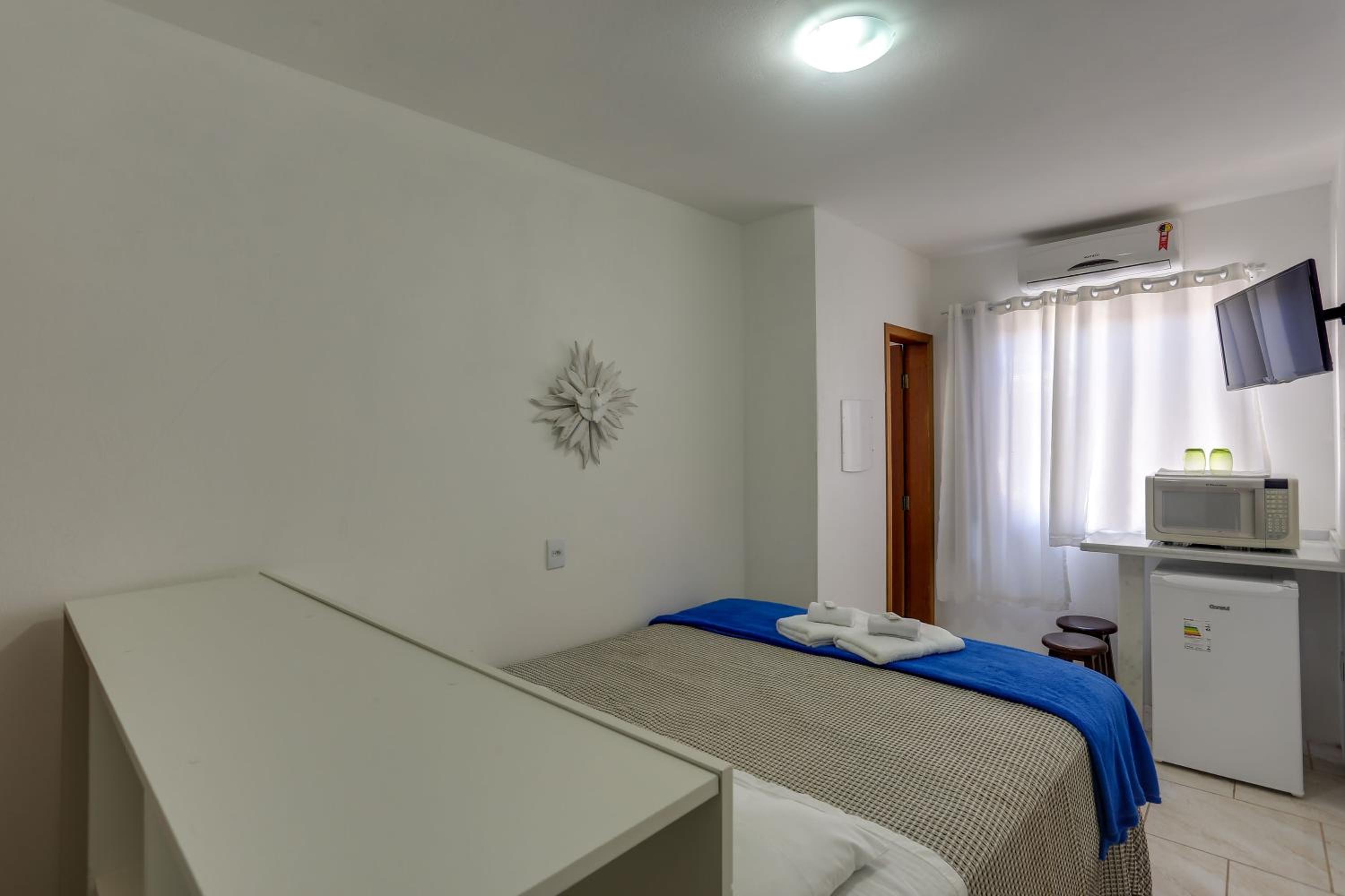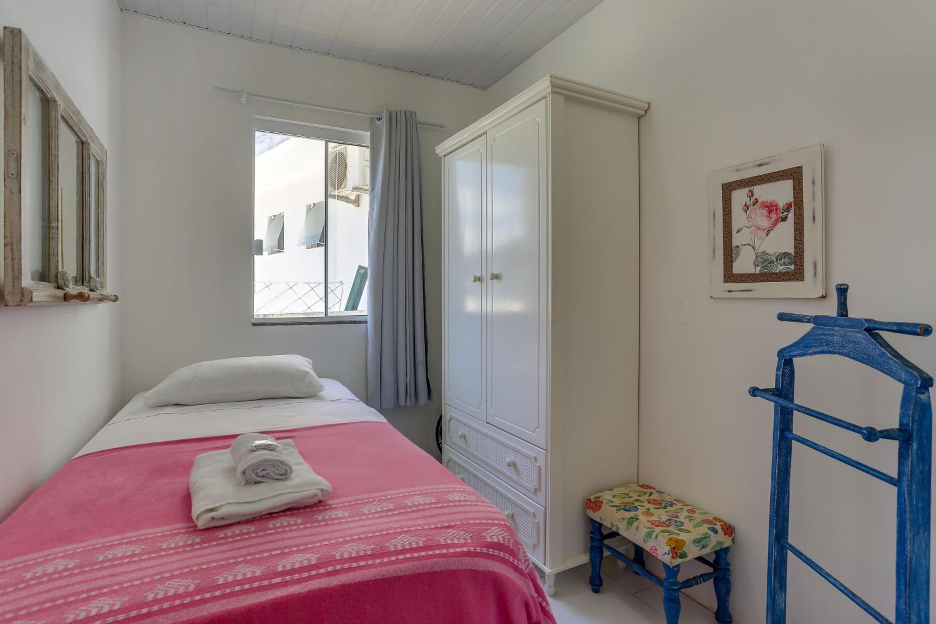 La ubicación es excelente, El trato del personal, lo mismo. Muy cordial. Tiene estacionamiento, cosa importante, te dan llaves para el portón y podes llegar a cualquier hora sin depender. Super muy grande con comida para llevar y todo lo necesario, a la vuelta; farmacia, al lado, todos los negocios necesarios muy cerca. Muy bueno el precio. Fuimos 2da quincena de marzo, pagamos R$ 210.- la noche. Volveria a ir sin duda. Se puede recorrer las demas playas del norte de la isla, pues estan muy cerca,