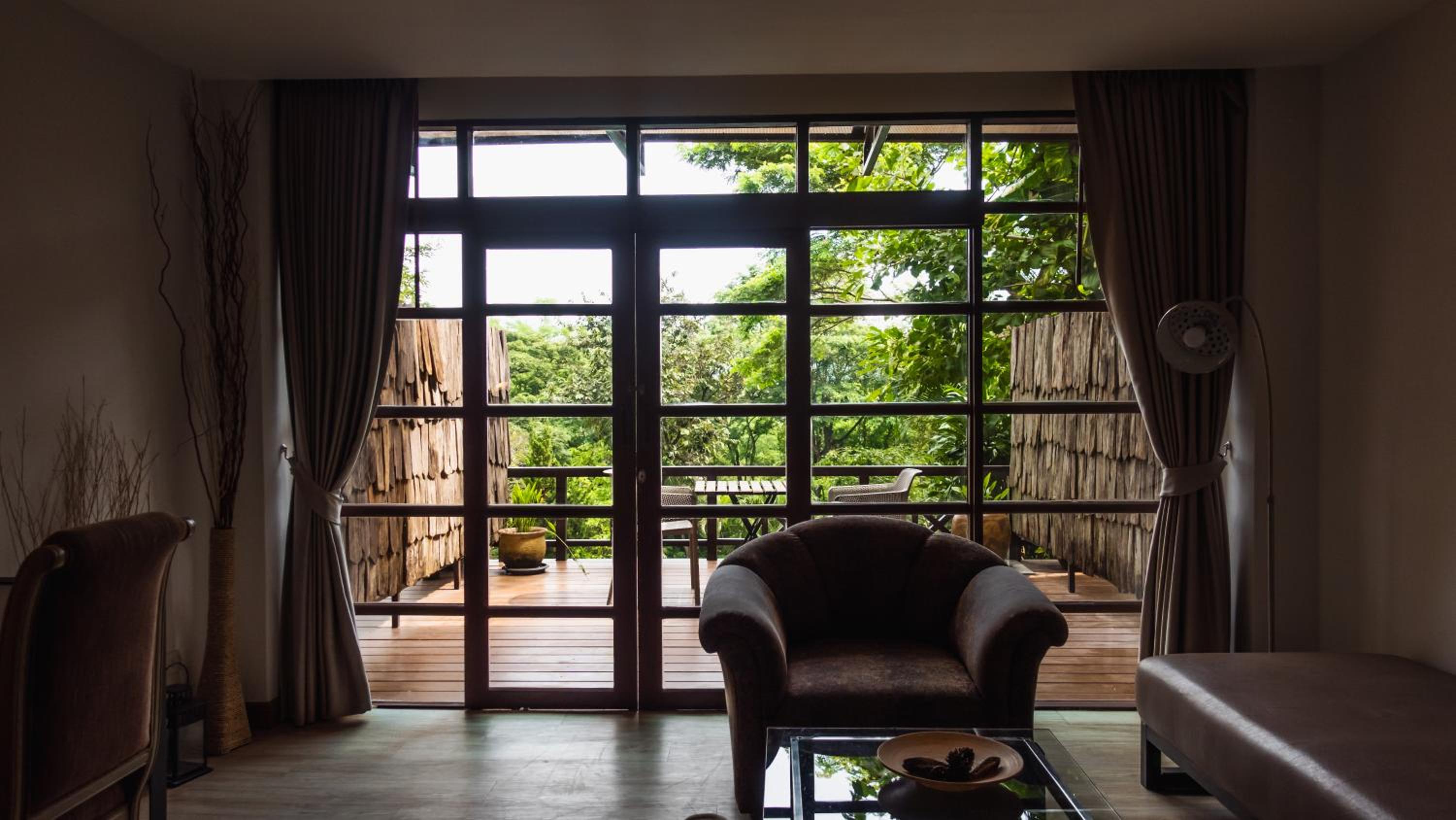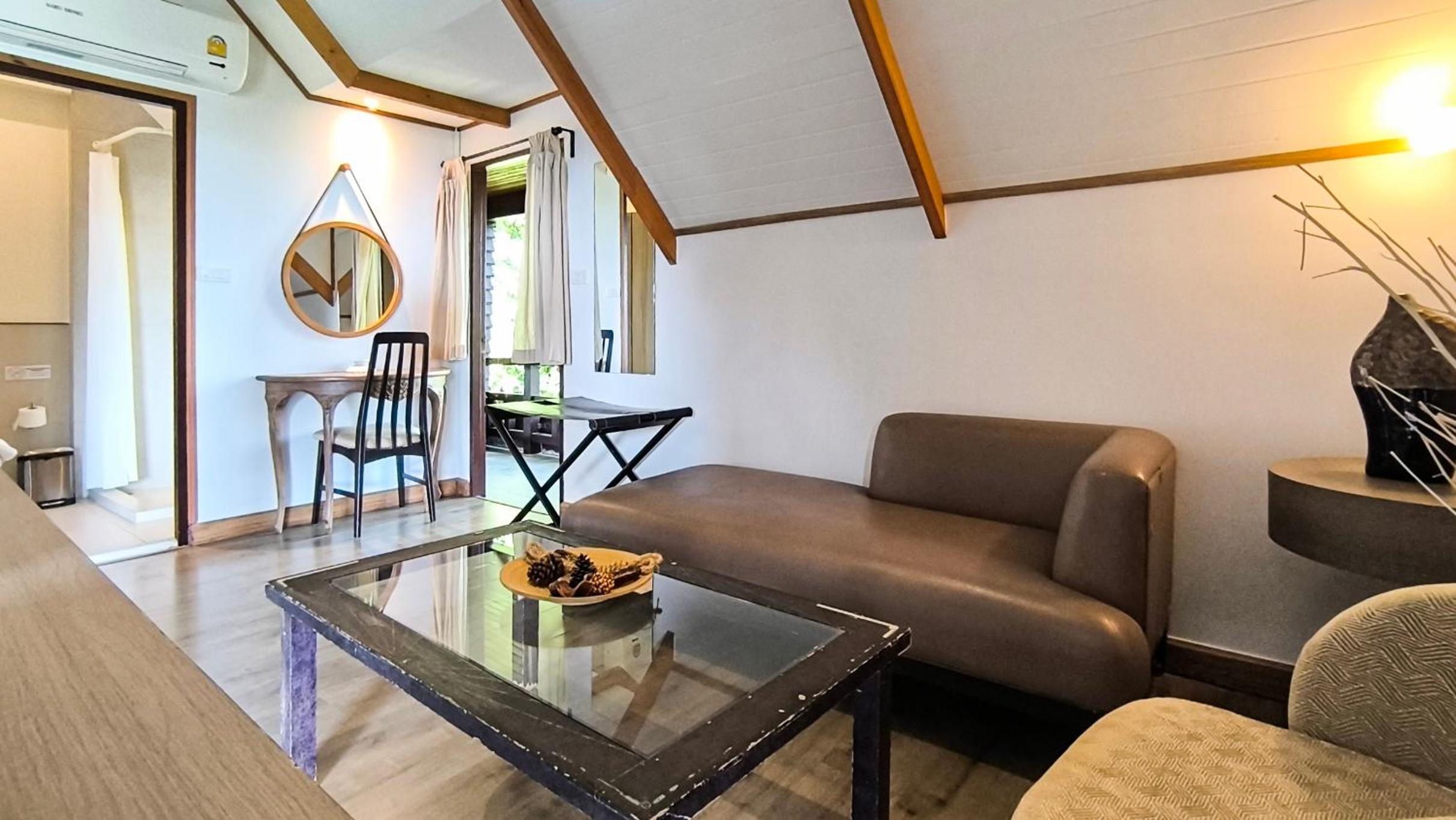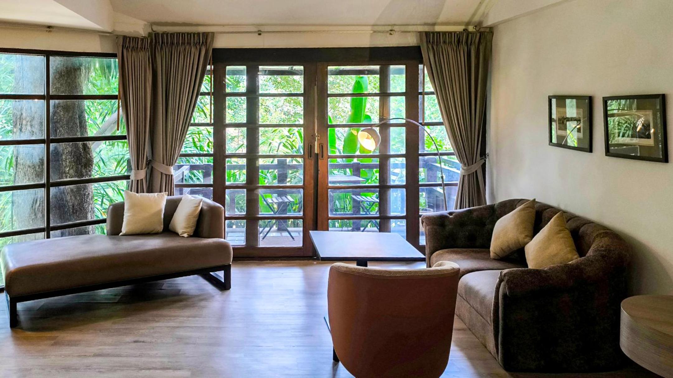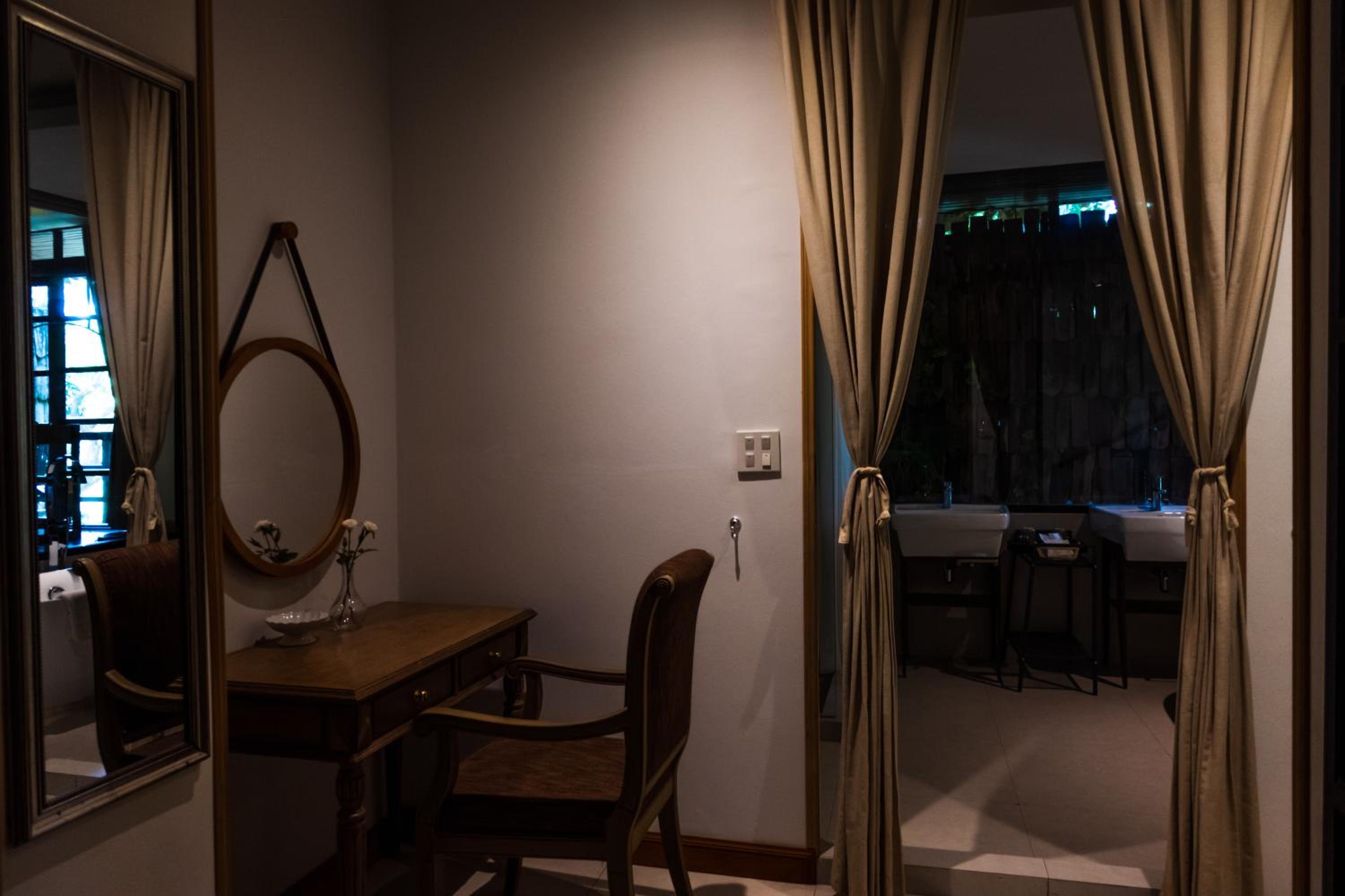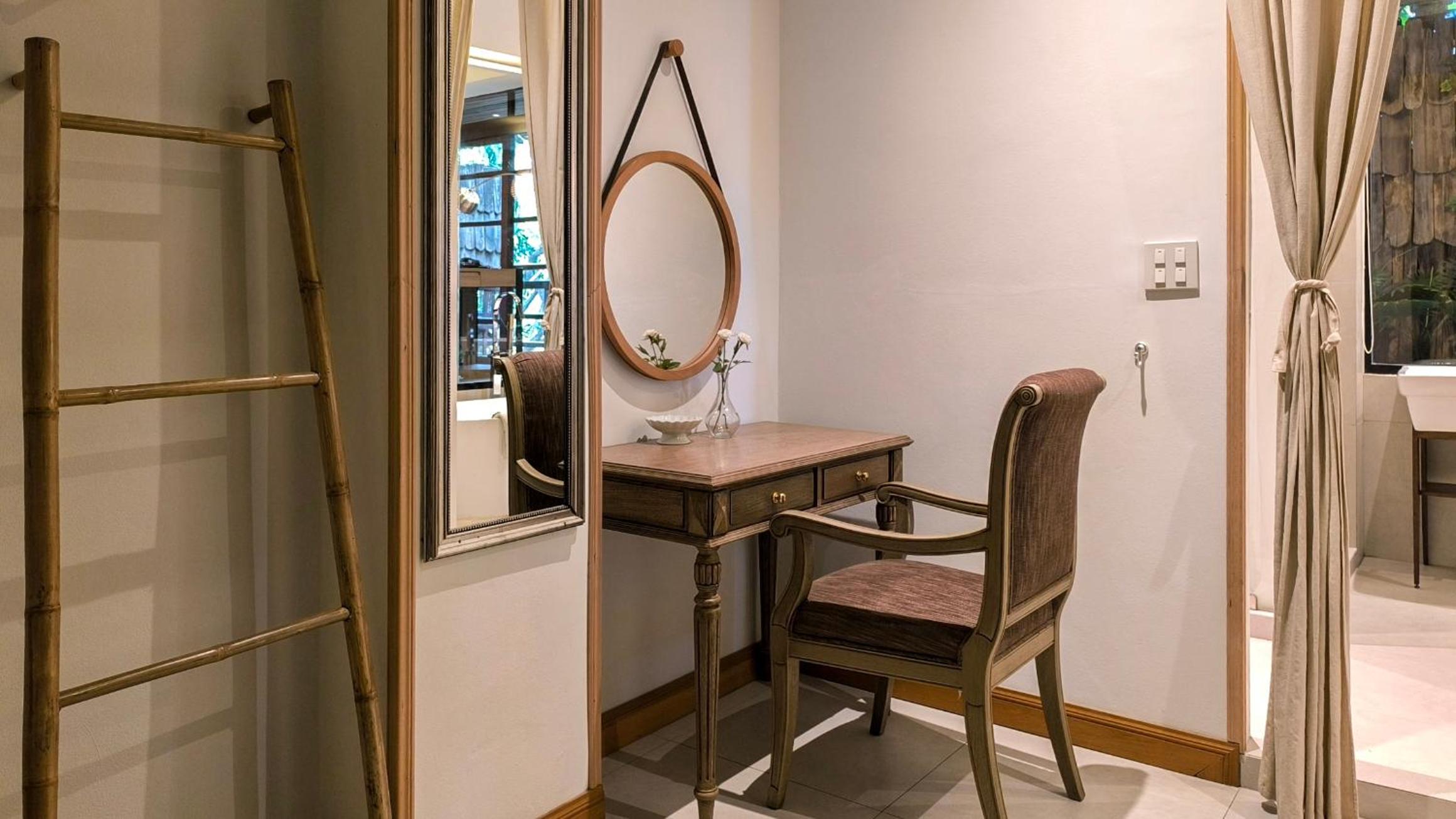 Issara Boutique Winery Hotel offers elegant rooms with modern amenities, including free WiFi and private bathrooms. Some rooms even feature a DVD player for entertainment. Relax in the comfortable seating area provided in each room.
