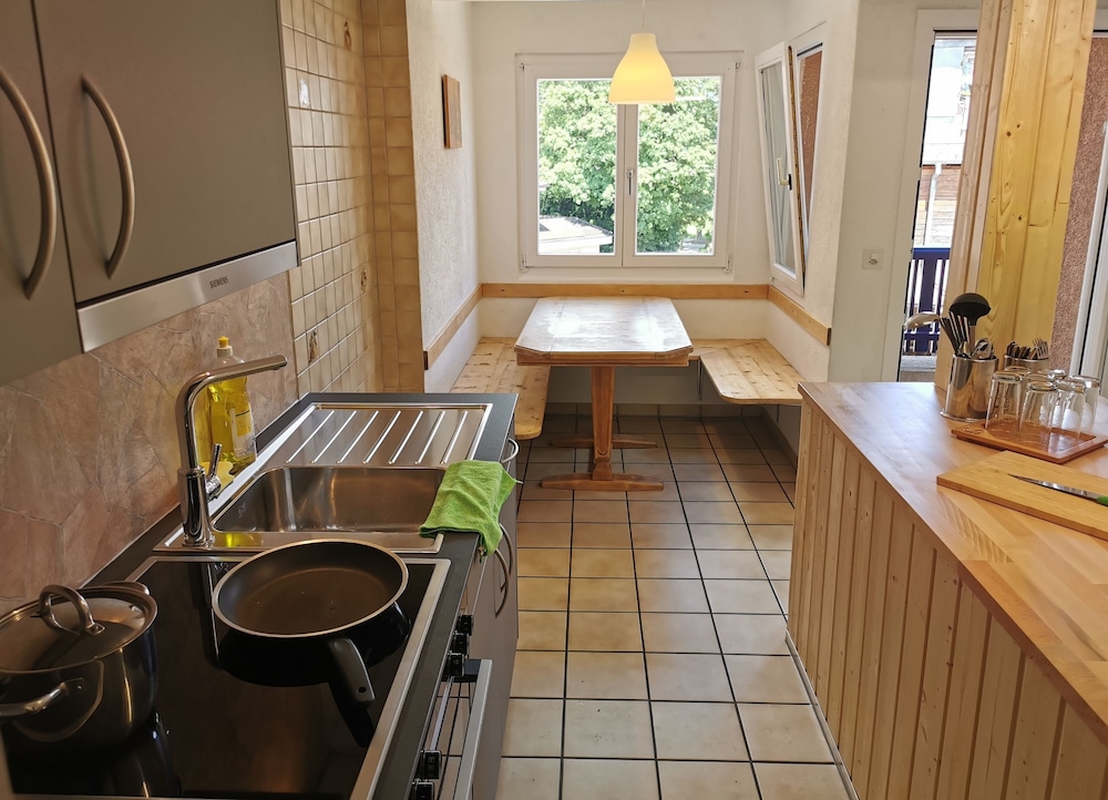 The flat is located above an Indian restaurant, and the entire place smells like old, dirty oil. I have children with asthma, and I didn't expect this from a place in Switzerland!
