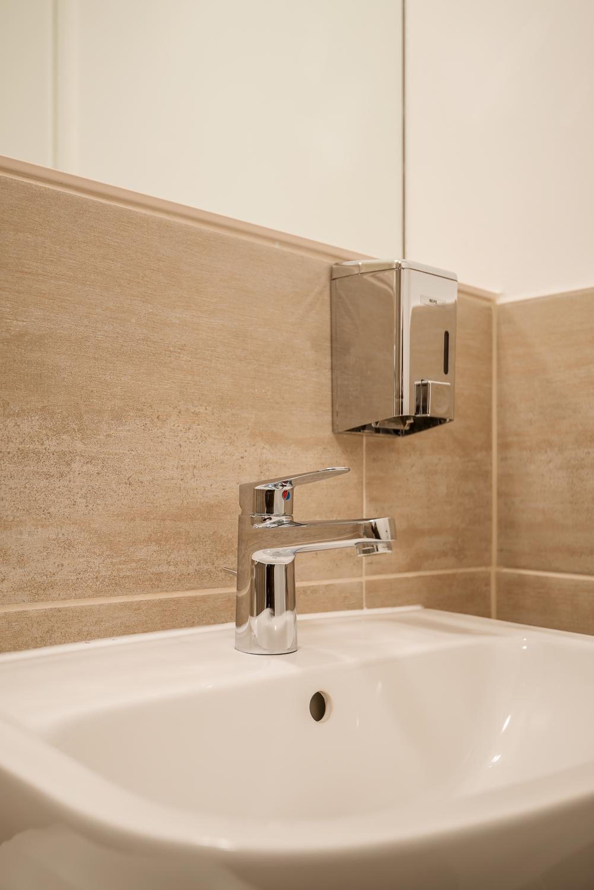 Very nice room size, nice kitchenette with a real fridge, very convenient for stays for a few days, large desk, good bathroom, nice staff.