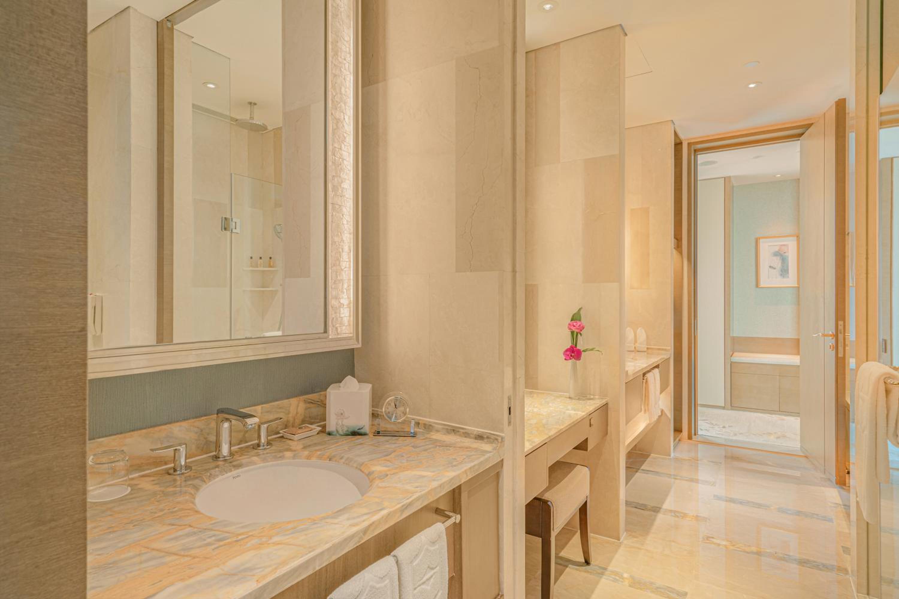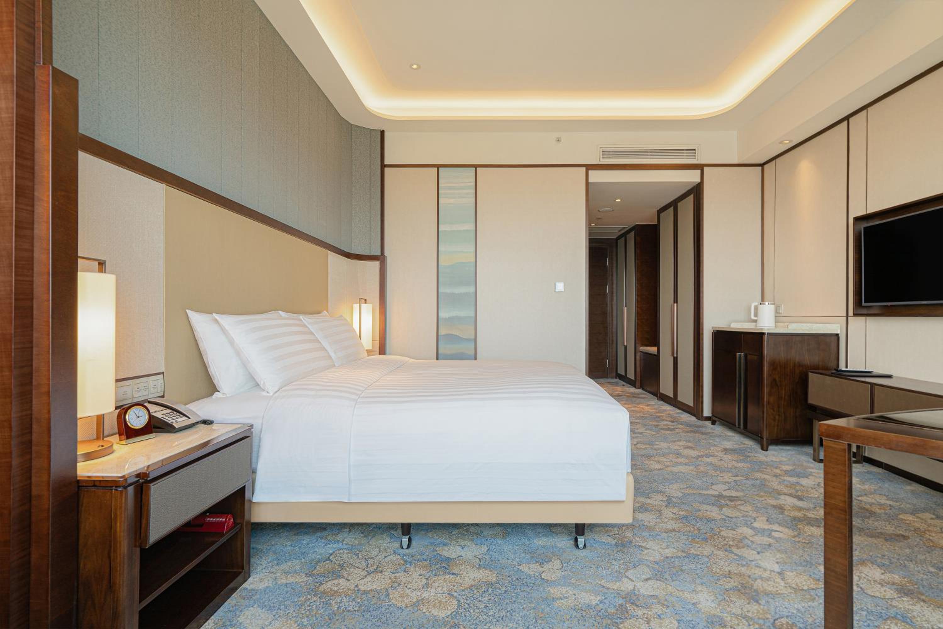 Experience a stay of elegance and comfort at Shangri-La Jinan. Each room is thoughtfully designed with a desk, private bathroom with a hot tub, and cozy seating area. Enjoy modern amenities like air conditioning and wardrobe in every unit.
