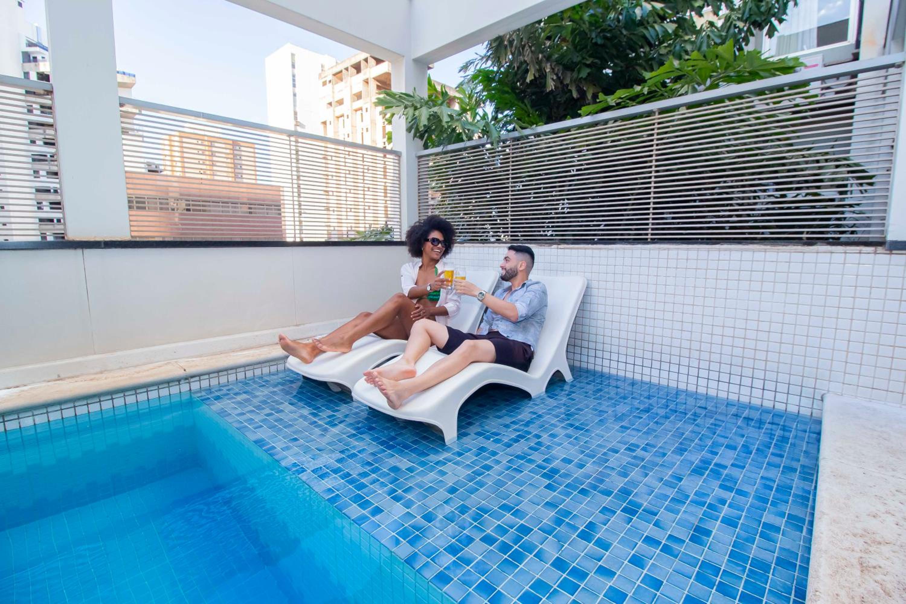 A piscina carece de um cuidado a mais, poderia ter água morna e jatos de massagem.