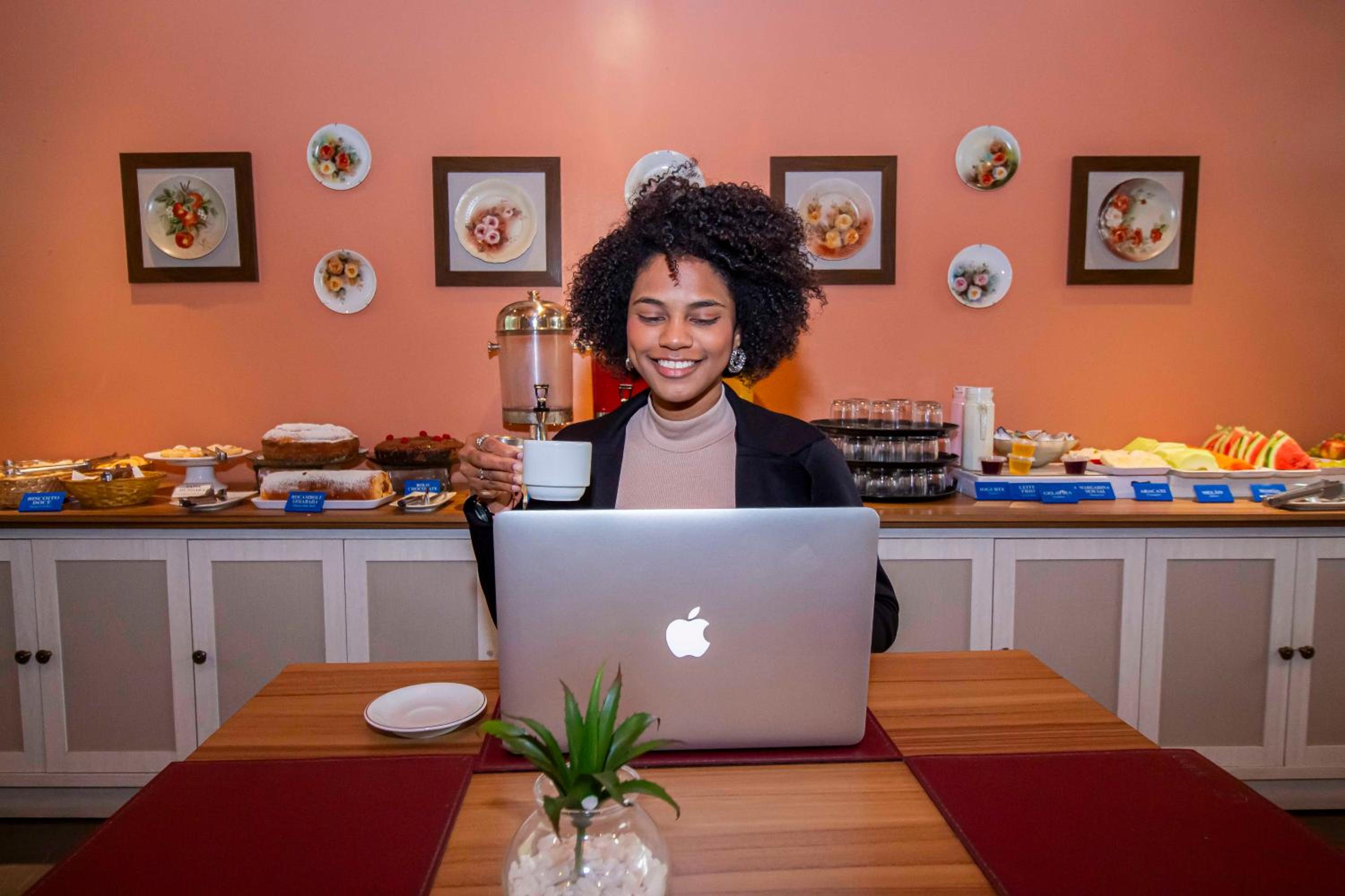 Tive uma pequena reunião com a representante do Conselho regional de Biblioteconomia 8ª Região da cidade de São José do Rio Preto na recepção , pois o hotel não permite que visitantes subam nos quartos.