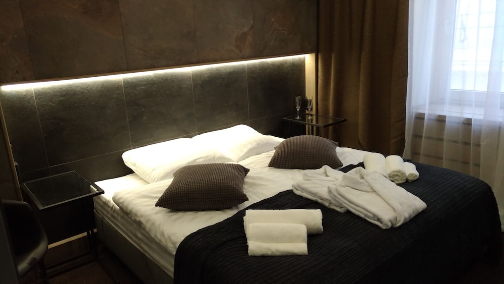 Nestled between two epic buildings this neat little boutique hotel is directly opposite the last tower of the Kremlin at the St Basils cathedral end. A perfect site for planning all your sight seeing. Friendly staff and clean rooms. We had a wonderful time.