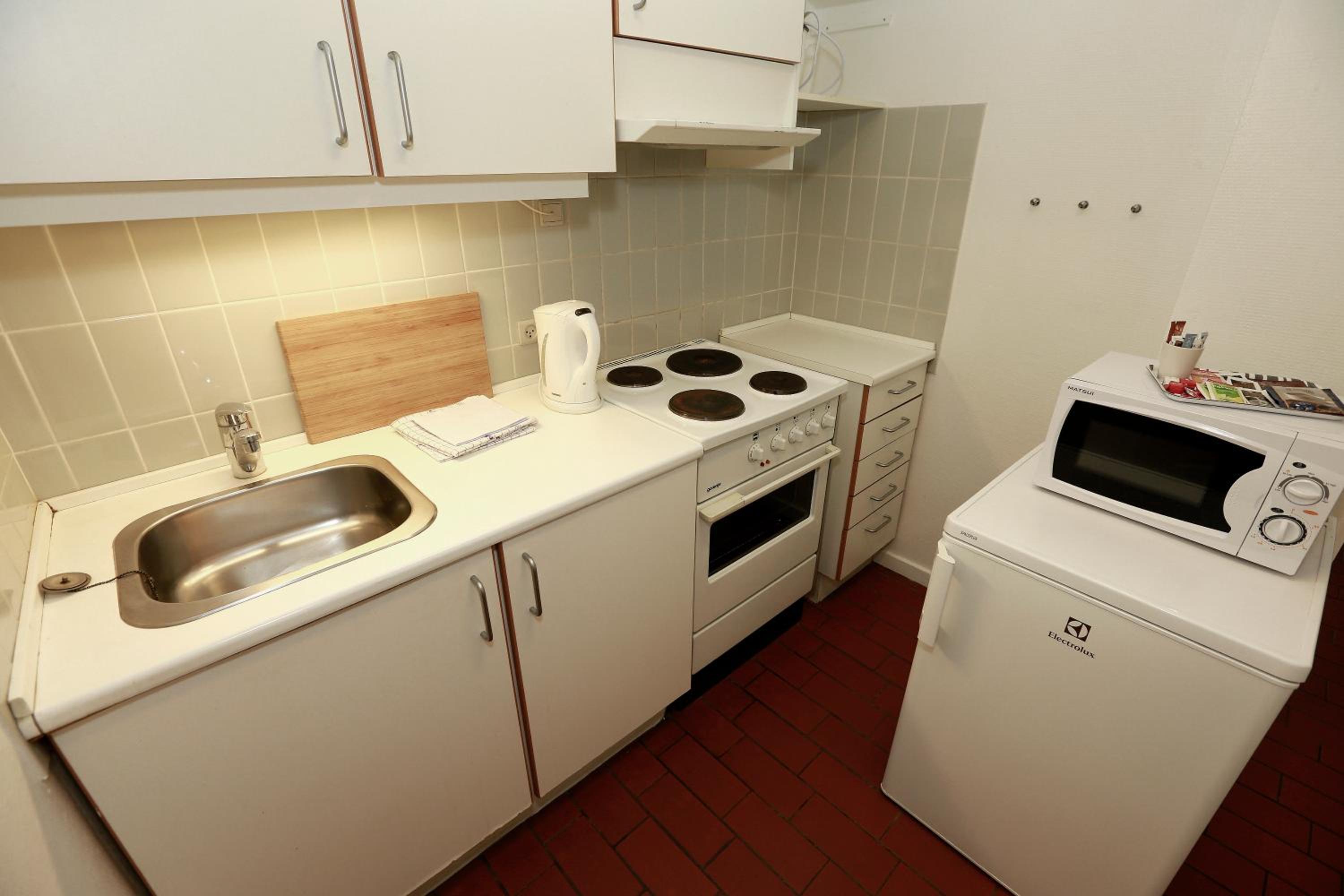 Choose between rooms featuring an electric kettle and fridge on the 5th floor or fully equipped kitchens in other studios and apartments.