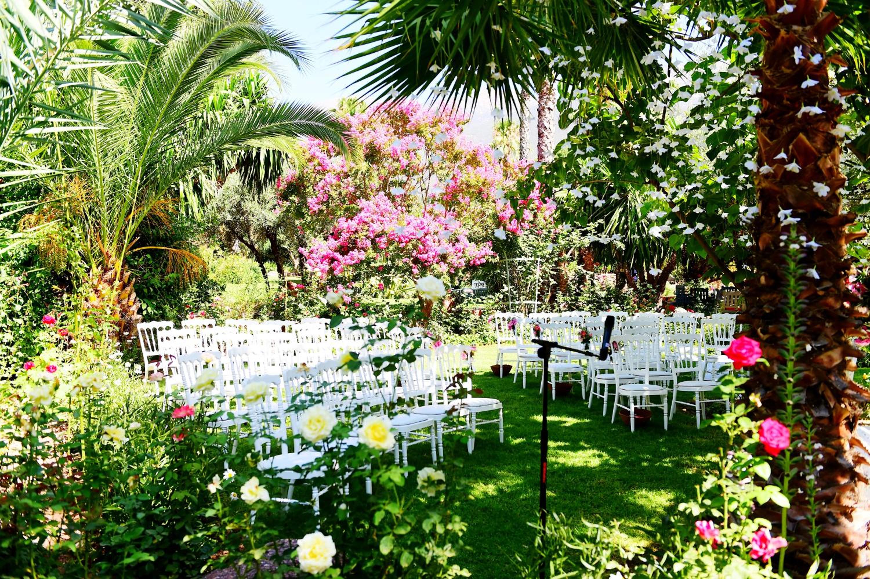 luscious gardens with centuries-old olive trees surrounded by beds of roses and lavender.