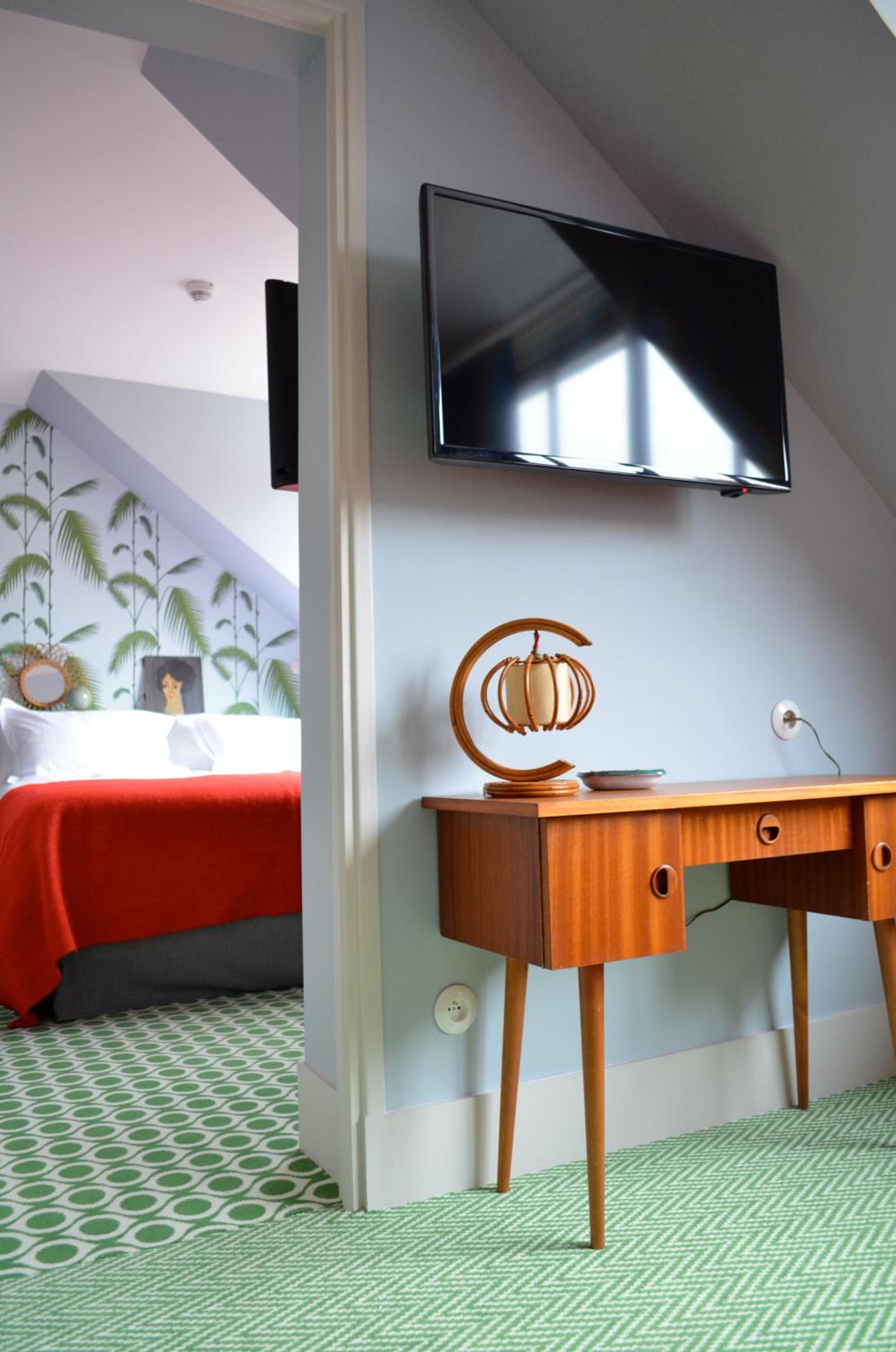 Hotel Les Pilotes offers a unique 60's-inspired décor with stunning views of the bay. Each room is elegantly decorated and equipped with modern amenities such as a flat-screen TV, free WiFi, minibar, and coffee/tea facilities.