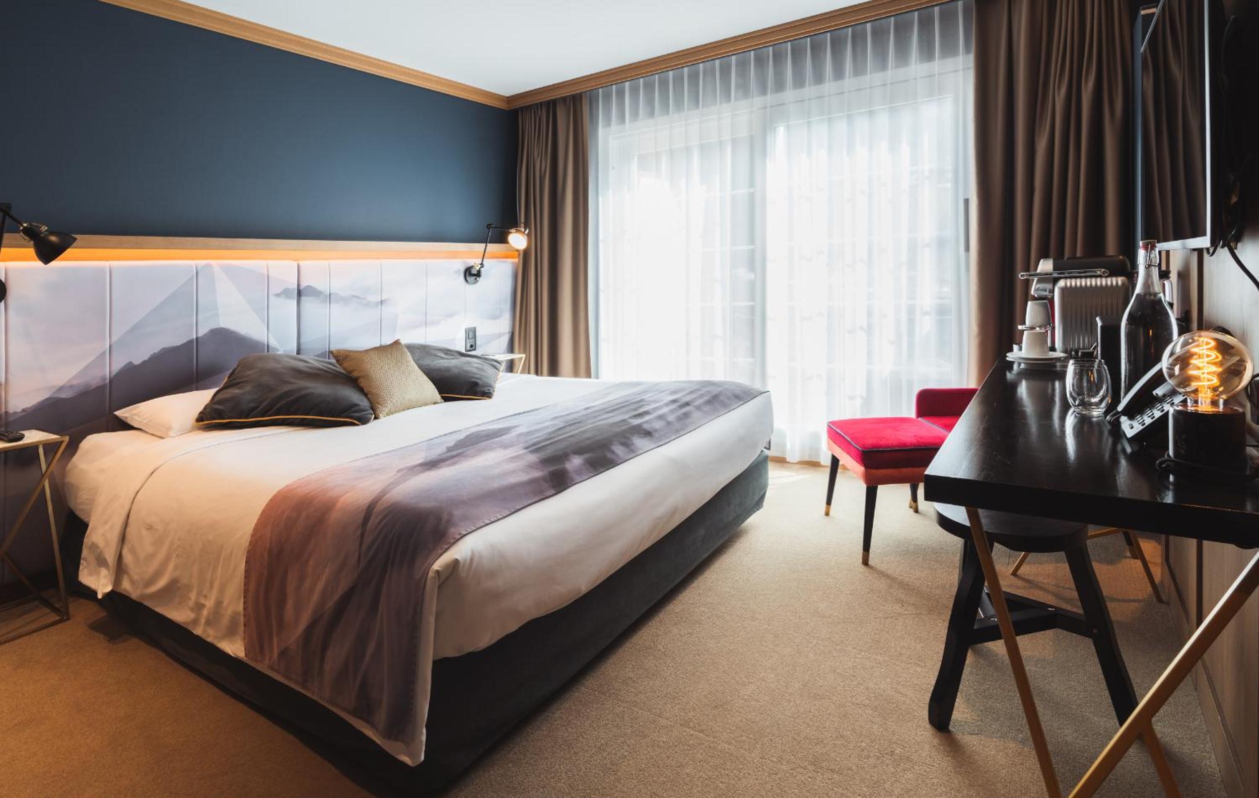 Experience the breathtaking beauty of Mount Eiger from Boutique Hotel Glacier, ideally located in Grindelwald. Luxurious Accommodations Enjoy rooms and suites with picturesque mountain views, equipped with modern amenities like flat-screen TVs and high-speed WiFi. Culinary Delights Indulge in delectable international dishes at the on-site restaurant, prepared with fresh, locally sourced ingredients. Sip on cocktails at the bar while taking in the stunning scenery. Relaxation and Wellness Unwind at the spa, complete with a sauna, steam room, and a heated outdoor whirlpool. Book your stay now and elevate your Grindelwald experience at Boutique Hotel Glacier.