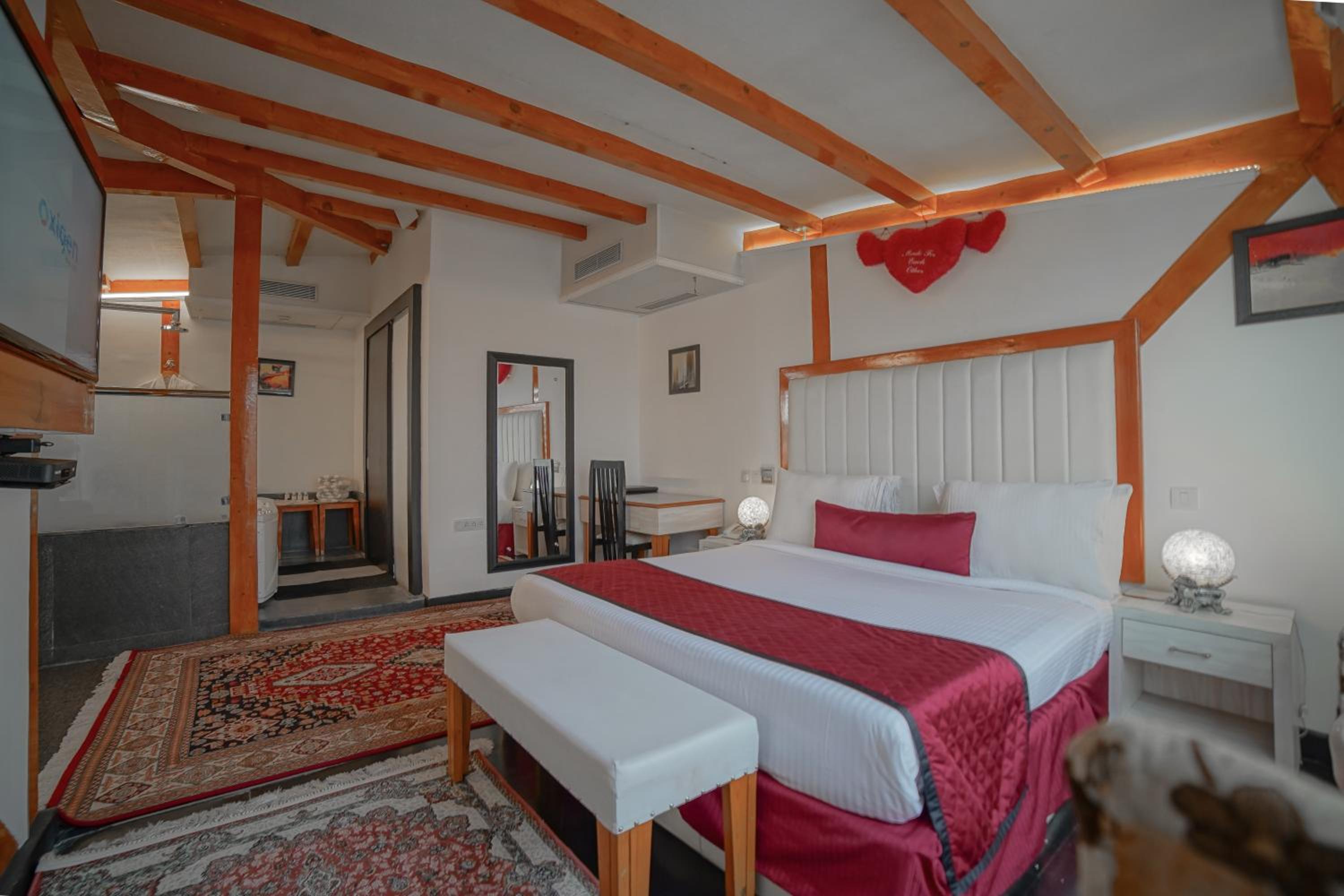 Hotel Rose Petal Srinagar offers a luxurious stay with a seasonal outdoor swimming pool, free private parking, and a shared lounge. The 4-star hotel boasts room service, a 24-hour front desk, and free WiFi. Each room is equipped with air conditioning, a flat-screen TV, and a private bathroom with free toiletries.