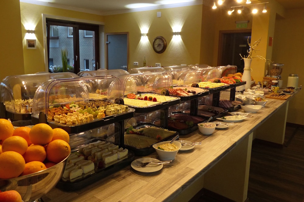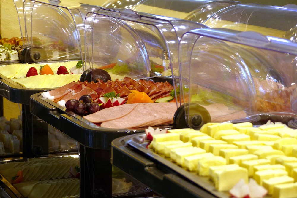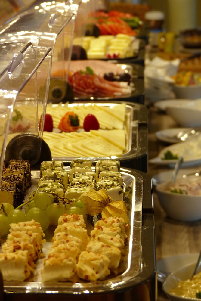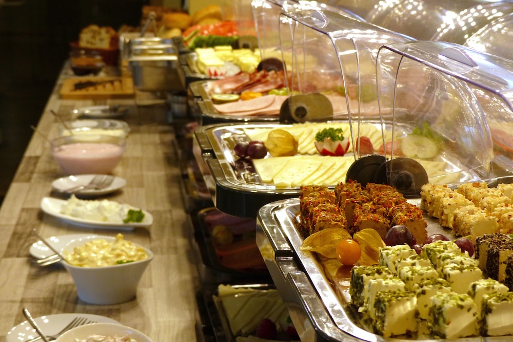 Es gab sehr viel zum probieren beim Frühstücksbuffet von Wurst und Käse, Obst, Fisch, Müsli, verschiedene Sorten Brot und Brötchen, Croissants, viele Sorten Rührei und Säfte.