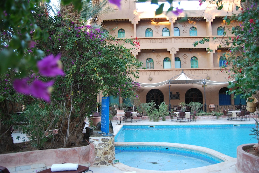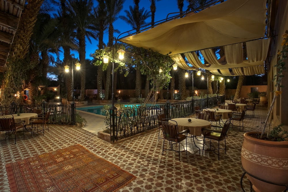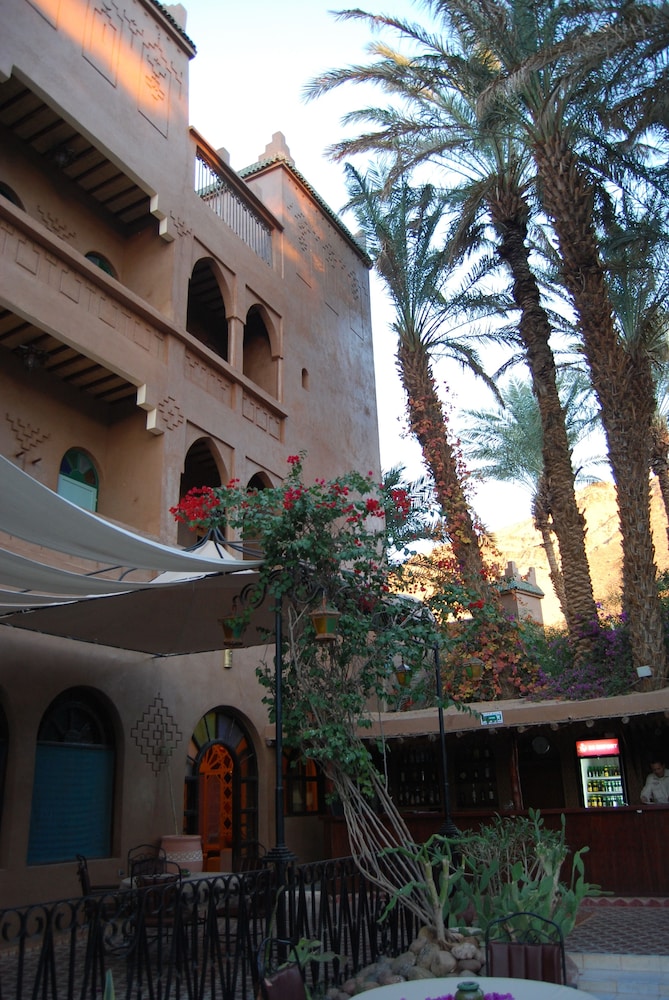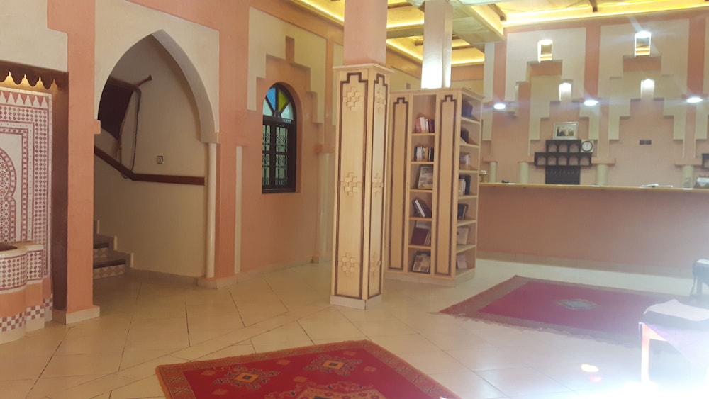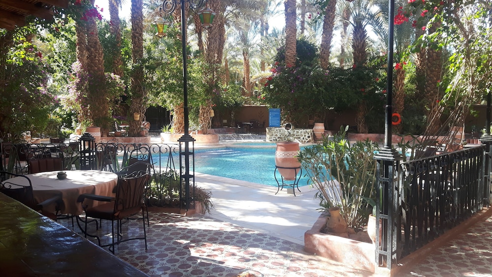 Das Hotel ist am südlichen Stadtrand von Zagora gelegen, praktisch an der Route Richtung M'Hamid und Wüste Erg Chegaga. Ein älterer Bau, Zimmer/Bad gut, Ess-Saal eher dürftig. Schöne Aussenanlage mit Pool.