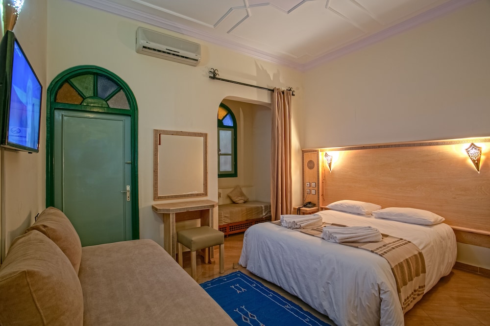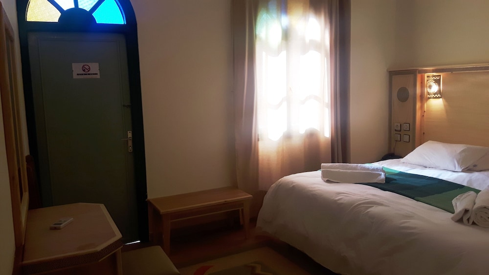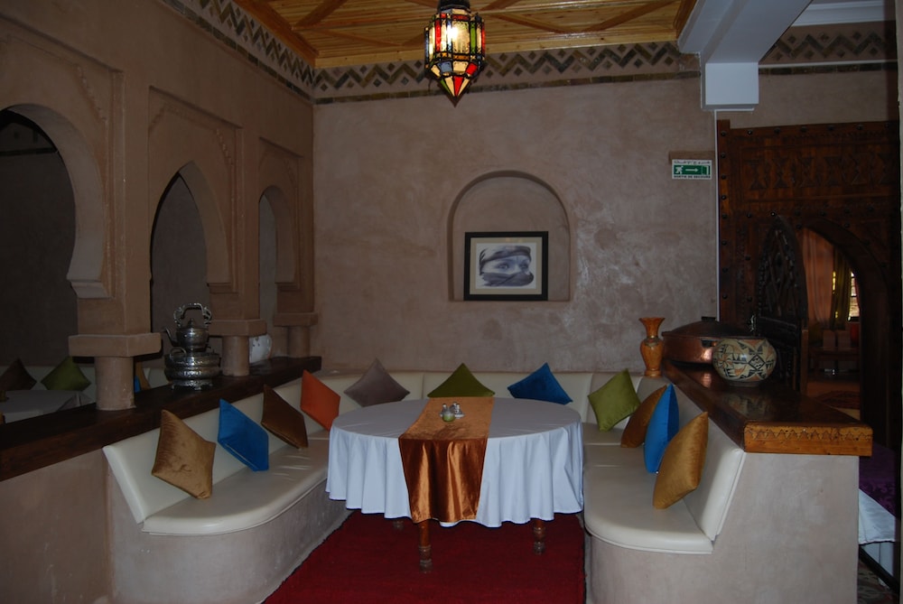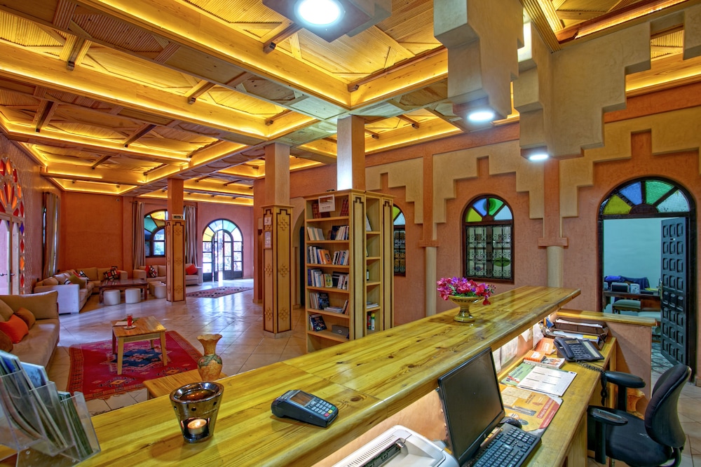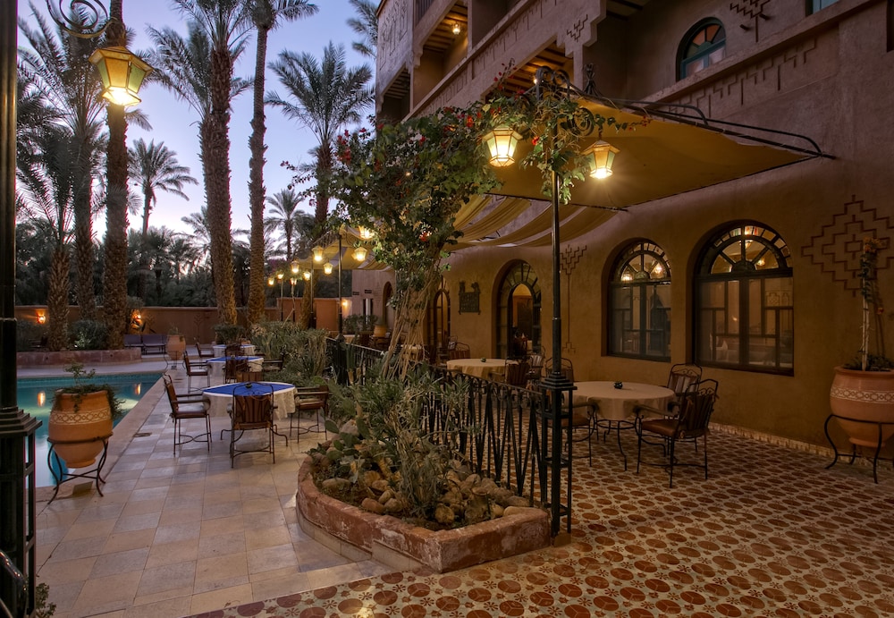 Das Hotel ist am südlichen Stadtrand von Zagora gelegen, praktisch an der Route Richtung M'Hamid und Wüste Erg Chegaga. Ein älterer Bau, Zimmer/Bad gut, Ess-Saal eher dürftig. Schöne Aussenanlage mit Pool.