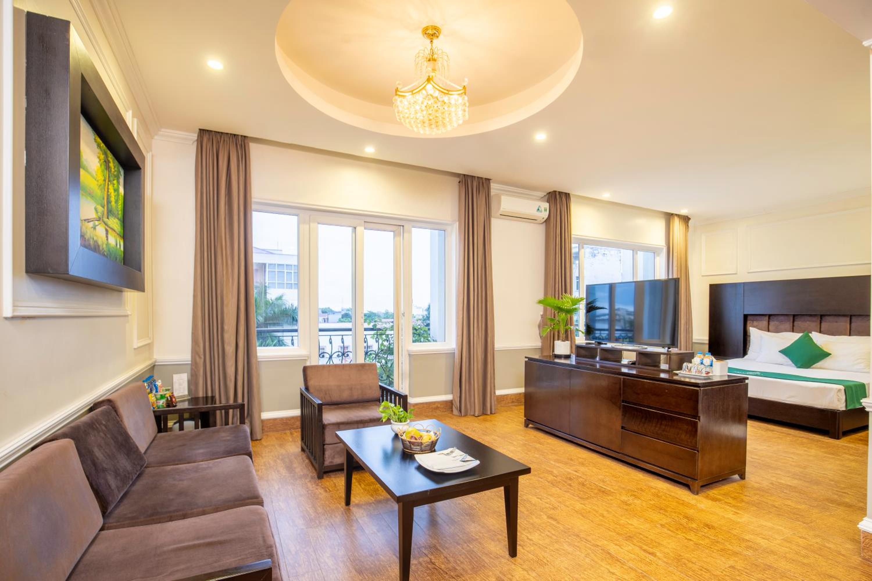 Each air-conditioned room is well-equipped with a flat-screen TV, fridge, and free toiletries. Some rooms even feature a private balcony, providing a relaxing space for guests.