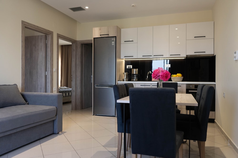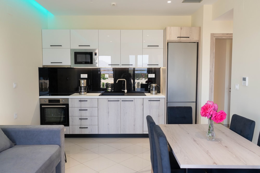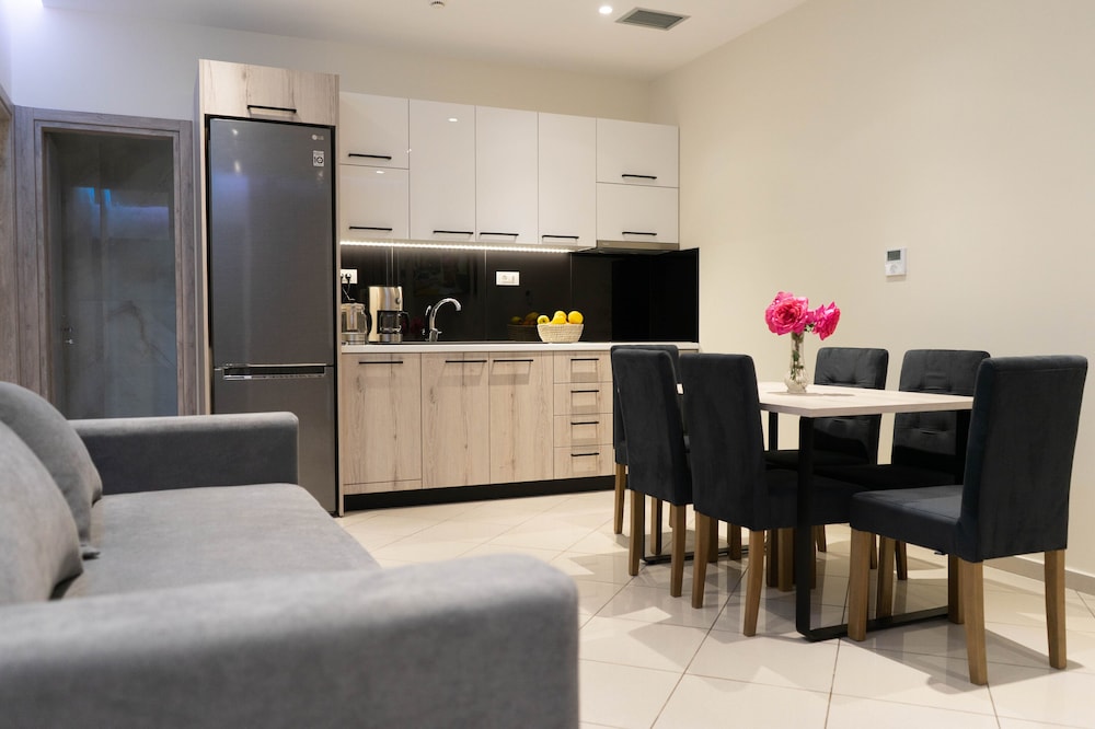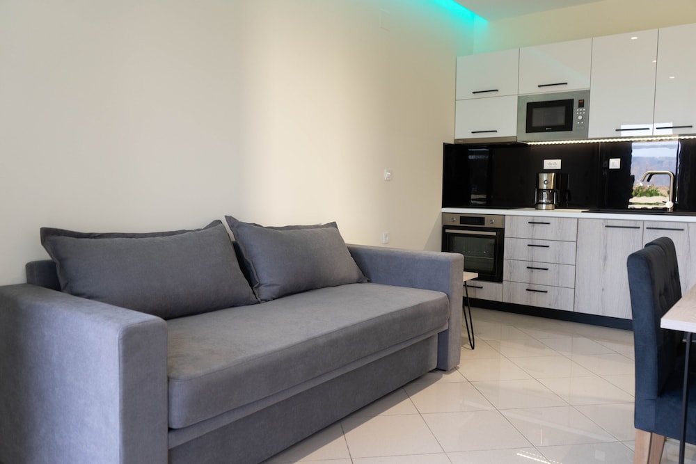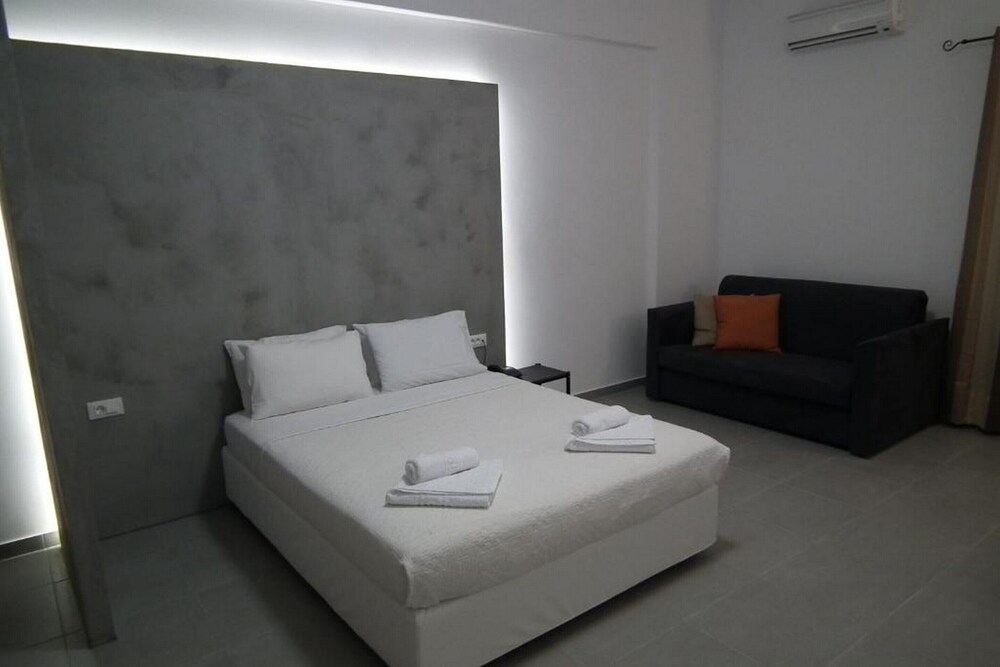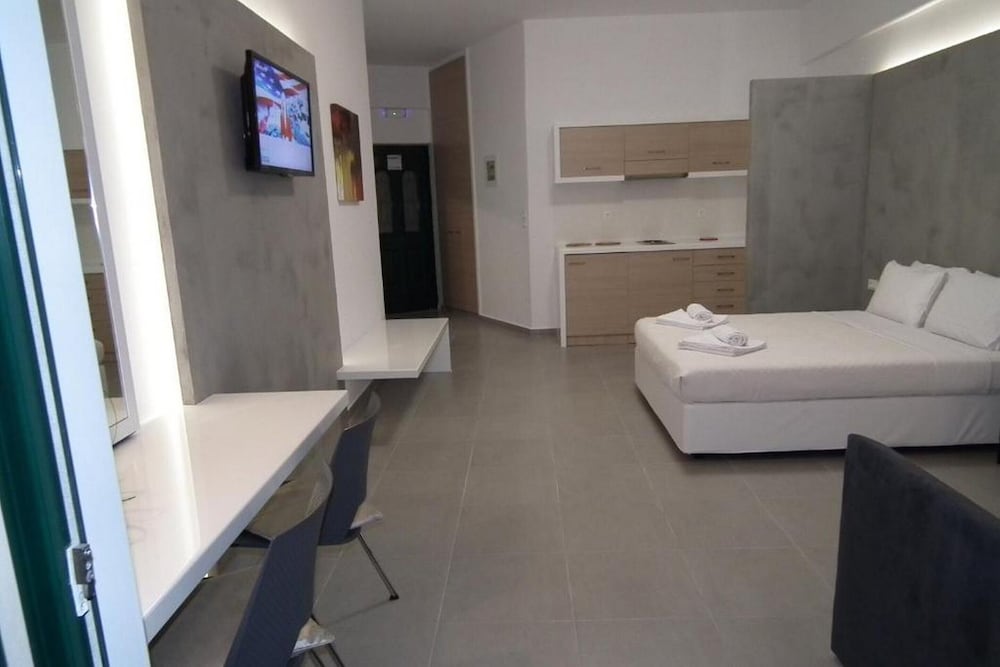 The Greek family that runs the apartments are lovely friendly and very chilled people. We were supposed to stay 2 days and we ended up staying 5. It's perfectly located to visit the beautiful surrounding beaches and still away from the busy, noisy, touristy areas. Literally 60 seconds away from a calm small beach, perfect for a late lonely swim. I'll be staying here again in the future. Thank you. Carlos, Andreia and André.
