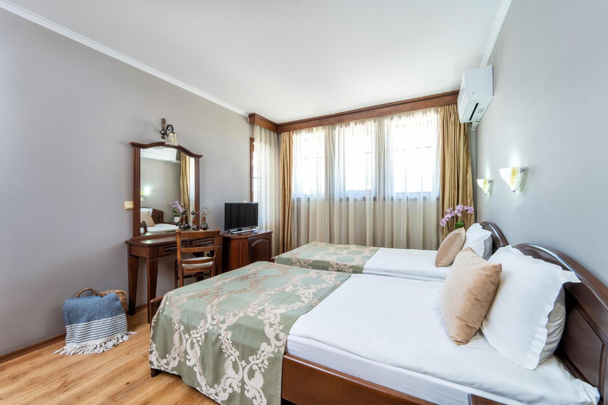 Each room at Hotel Izvora is equipped with modern amenities including a TV, air conditioning, and a private balcony. The cozy rooms ensure a relaxing stay for every guest.