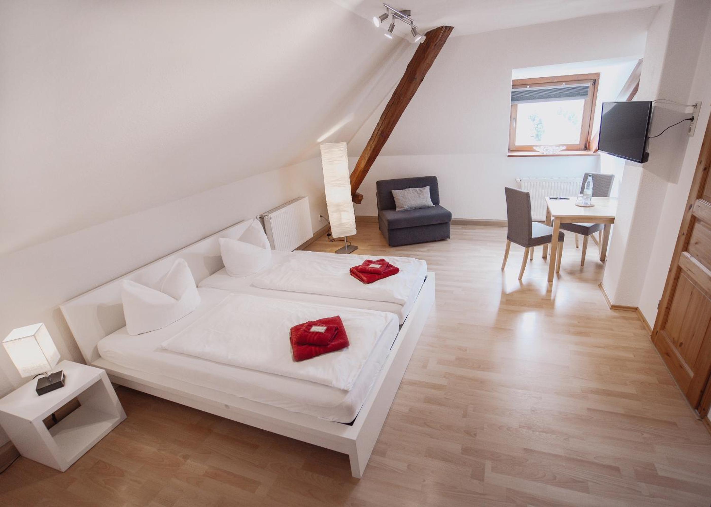 Experience comfort and convenience in our modern rooms at Hotel Am Rittergut, each equipped with a flat-screen TV, seating area, and en suite facilities. Stay connected with complimentary WiFi access during your stay.