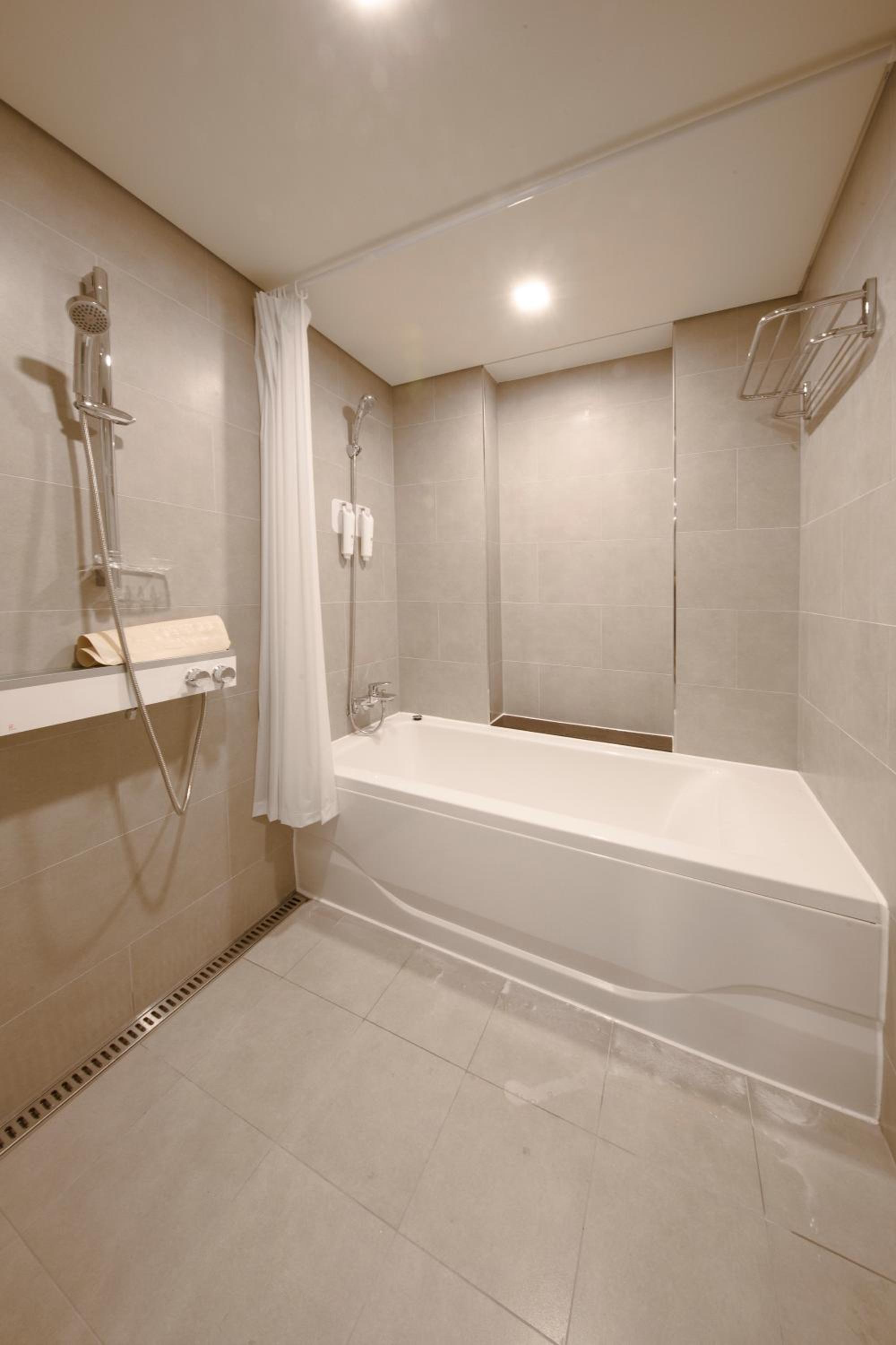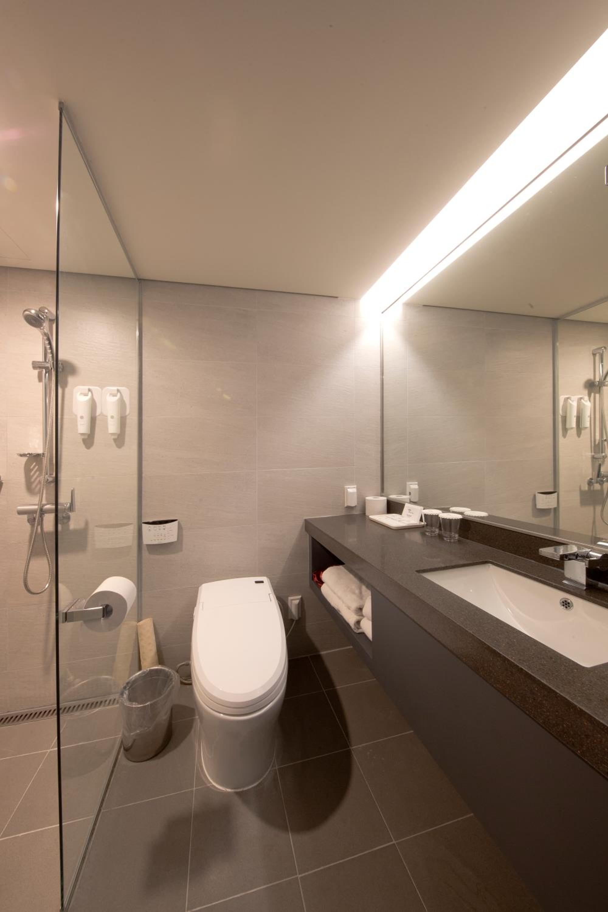 Each unit at the hotel is equipped with a flat-screen TV, fridge, electric kettle, and a desk, ensuring a comfortable stay for all guests. The private bathrooms feature electronic bidets and complimentary toiletries.