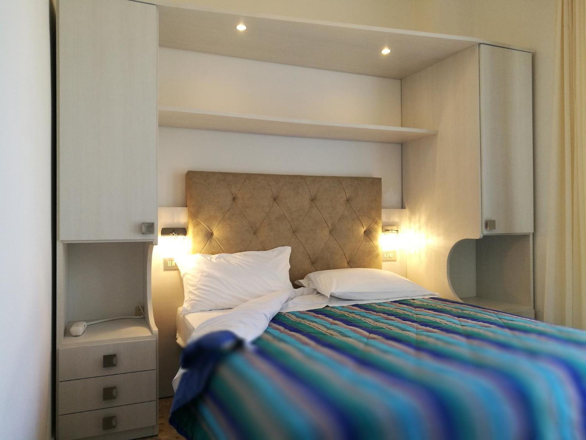 La struttura si trova in un punto strategico sia per recarsi al mare a piedi che per le uscite serali, essendo proprio in fondo ad una delle principali vie del passeggio e dei negozi. Rimane comunque un punto tranquillo, per nulla caotico. Ho apprezzato l'ampia scelta della colazione e la qualità delle portate di pranzo / cena: buffet di verdure molto ricco e interessanti opzioni di primi e secondi.