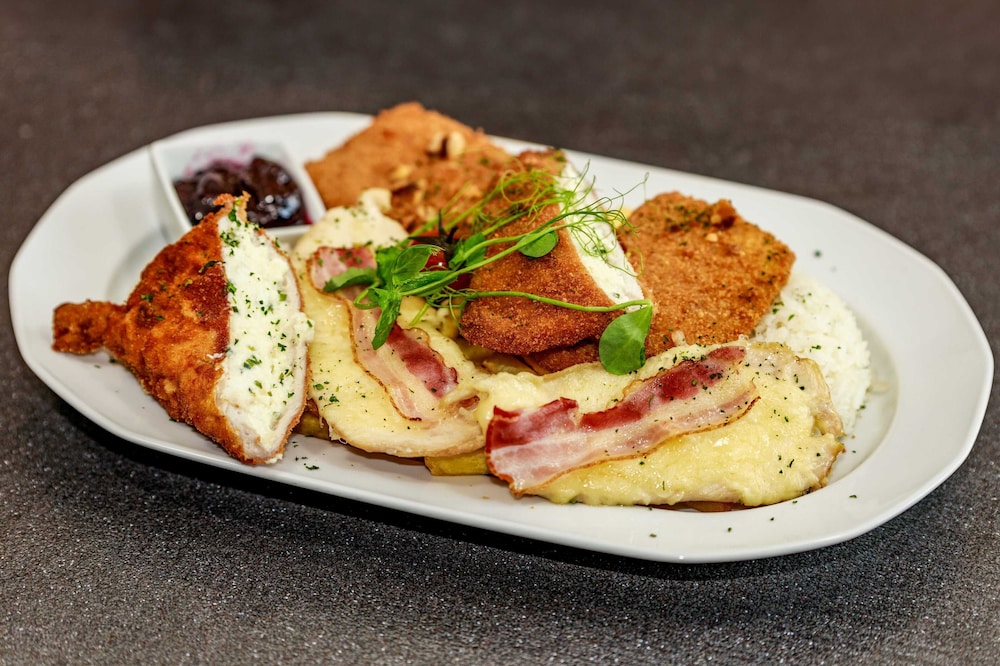 Top saniert, sehr freundliches Personal, Essen sehr gut, Zimmer und Bad geräumig, großer Parkplatz, nur Hauptstrasse stark befahren