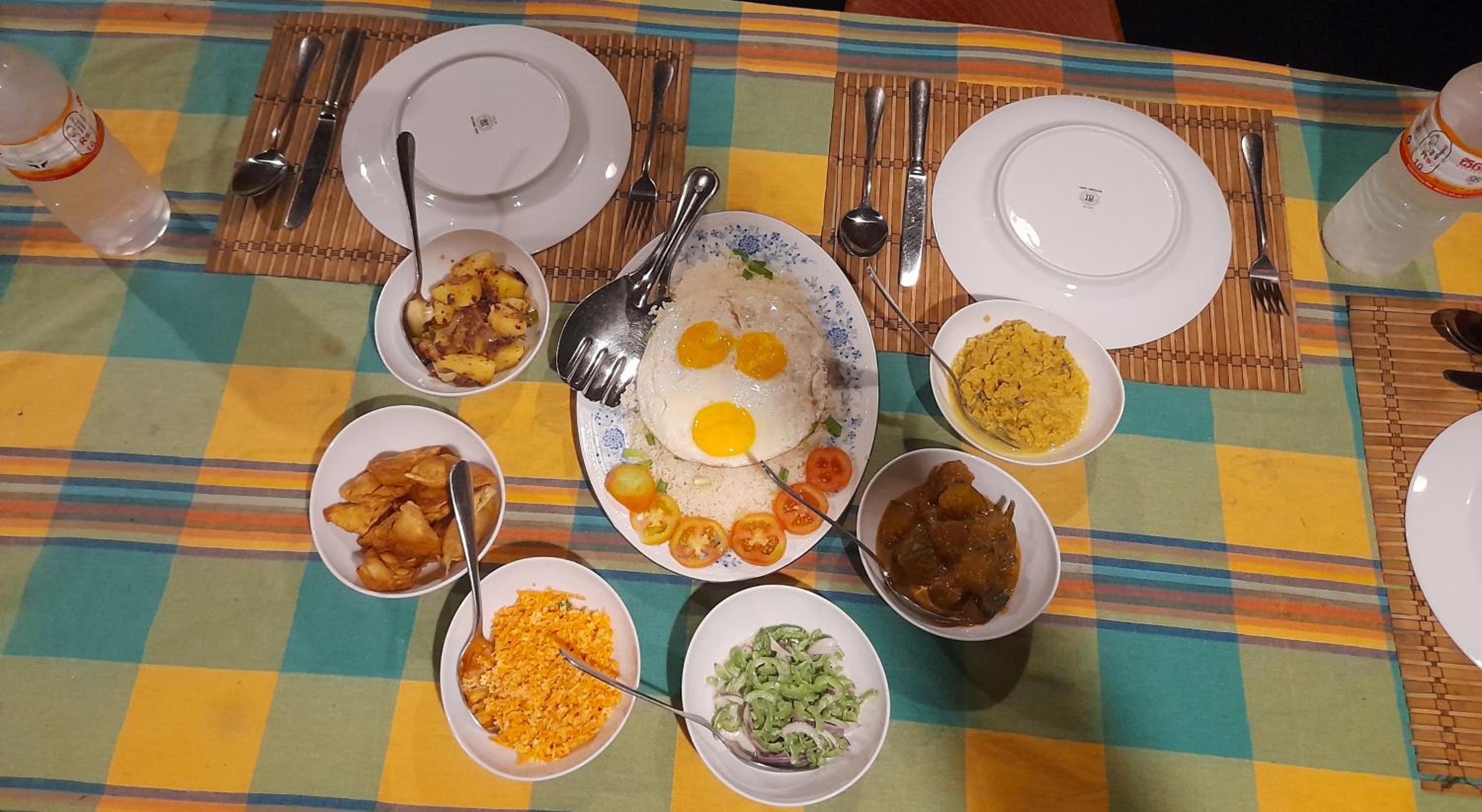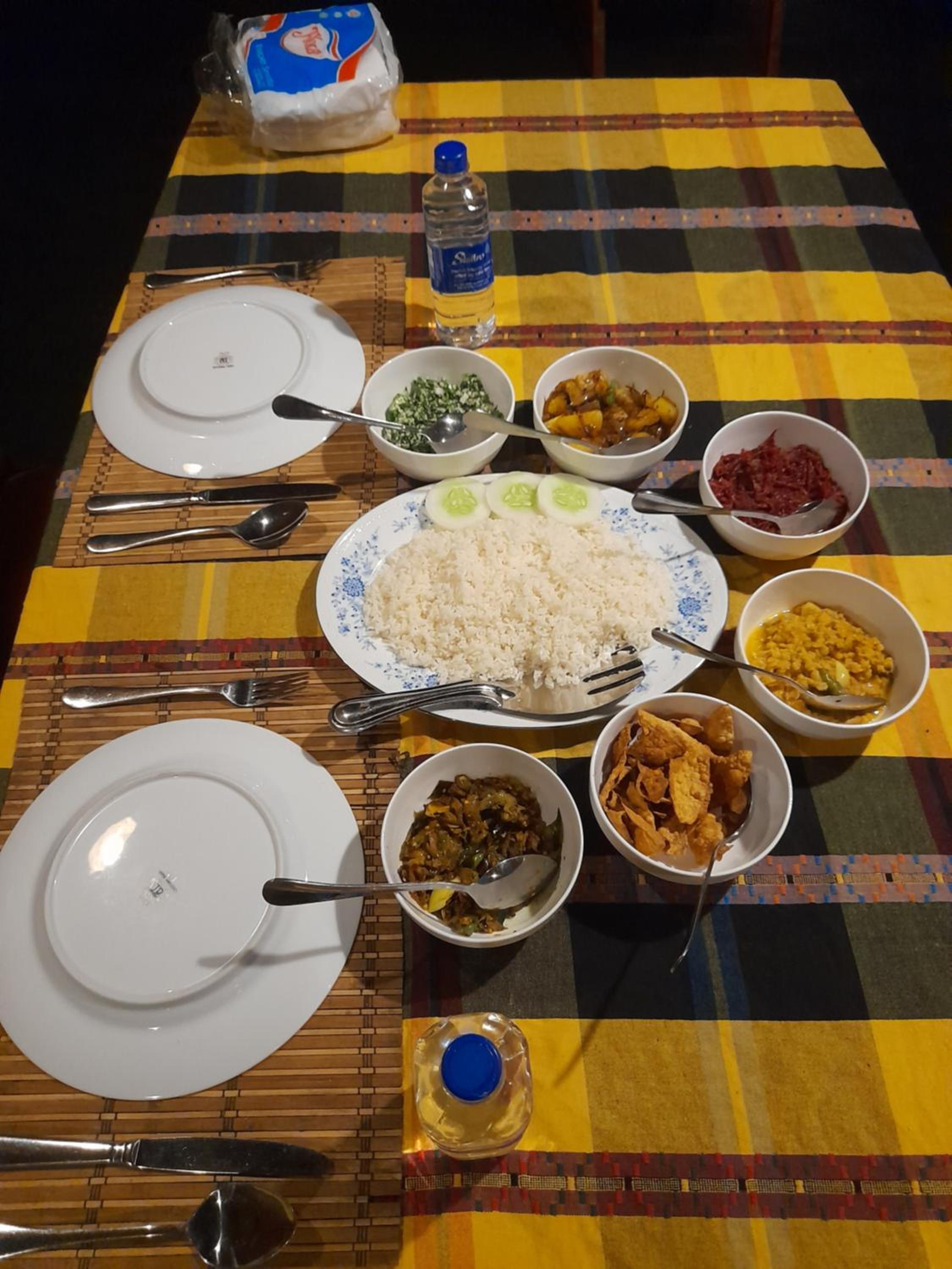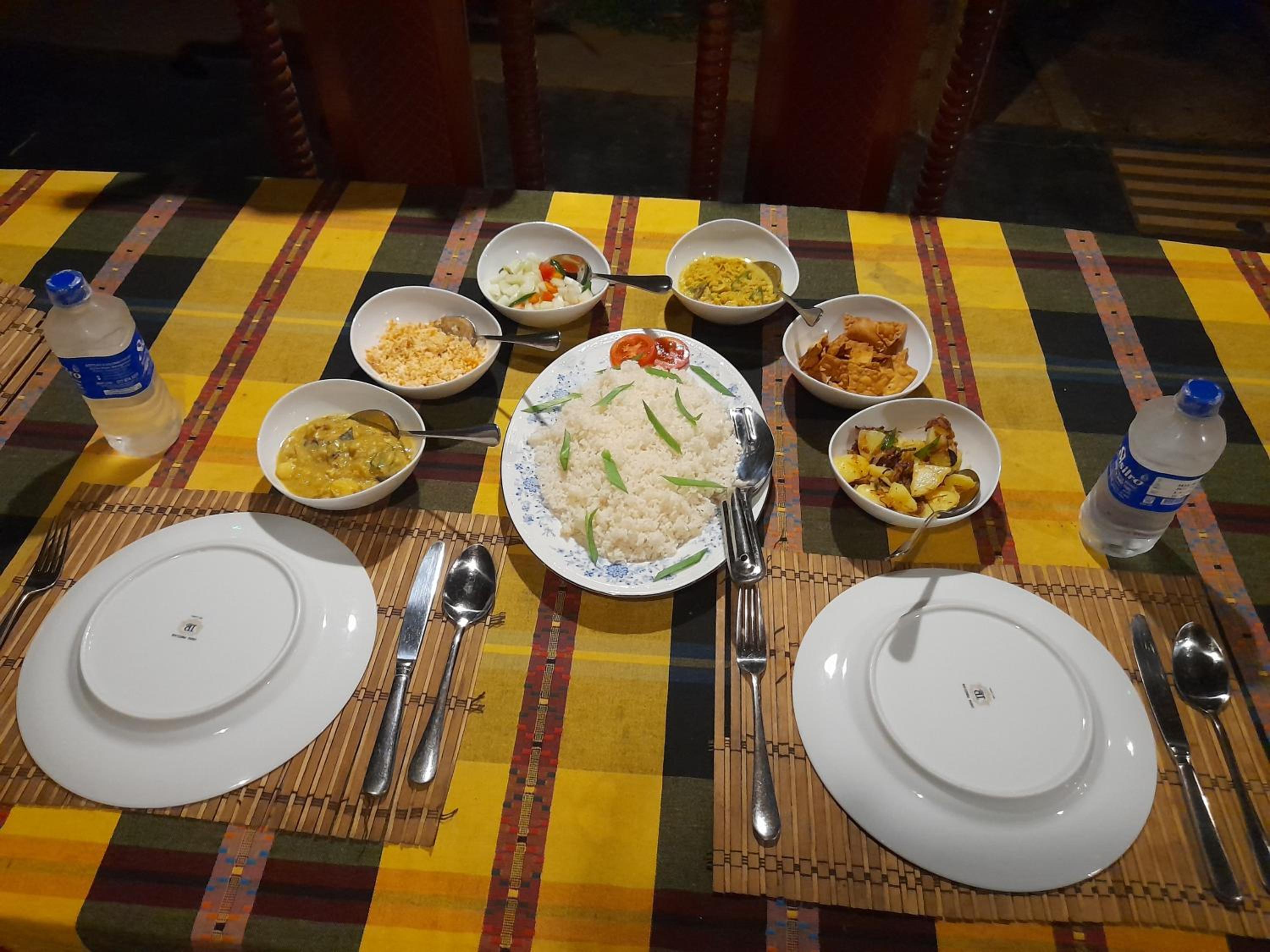The accommodation lacks protection from insects due to its surroundings. We had dinner, and it seemed like we received leftovers from another group, as the food, apart from the rice, was cold.
