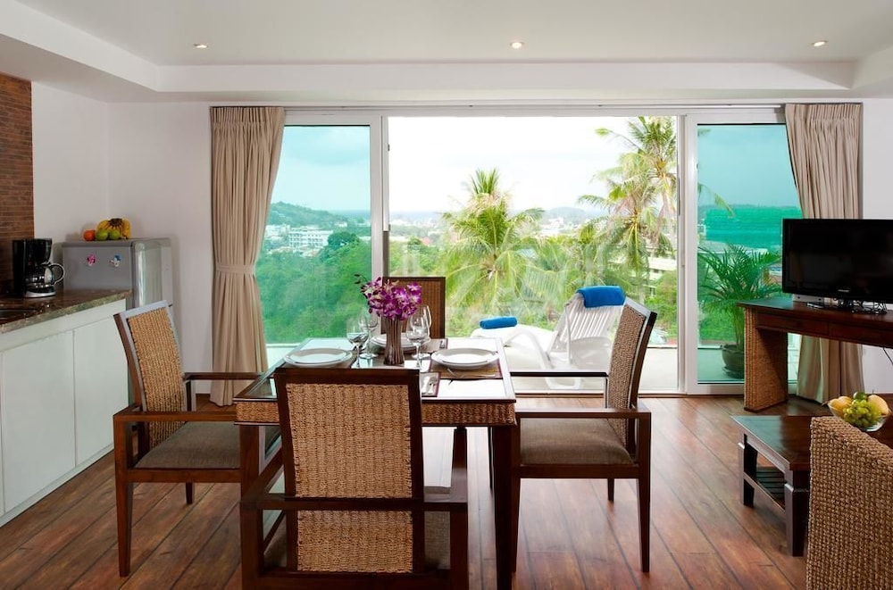 While the hotel does have a great view at sunset, it's the little things that let it down. We found the staff to be generally rude and unhelpful. There was 2 glasses in the room for a family of 4. The beds were made, but sheets not changed in a 10 day trip. The air-conditioning did not work in the living room. There were days where towels were not exchanged, or exchanged and not replaced - leaving us with no towels. All of this was brought up with management, who didn't seem to be concerned or willing to offer any help or assistance.There is also a 2km walk into Kata, which is hilly and on a busy road.