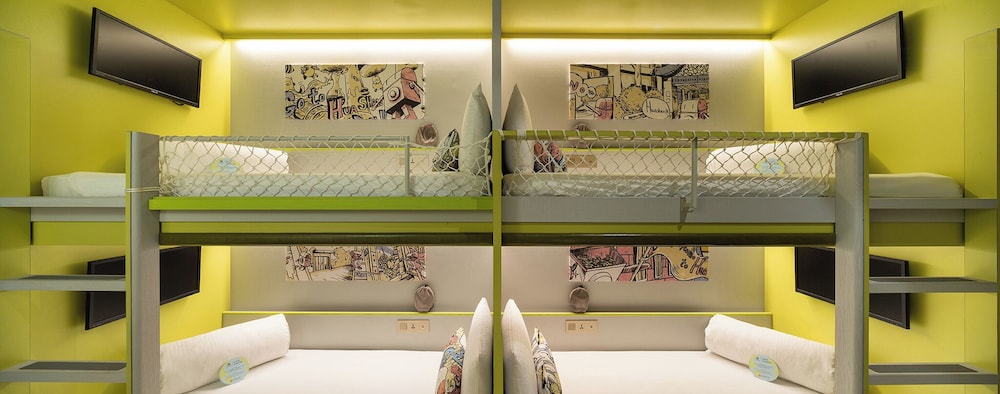 两大两小的家庭旅游,订了四人间,上下床两张,第一次体验文旅,孩子们特别开心,在床上爬上串下。房间不大但面面俱到,还有很多有意思的小设计。有欢迎饮和零食区。