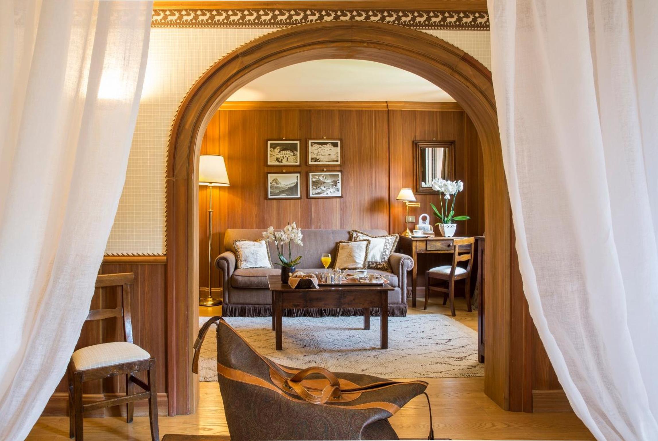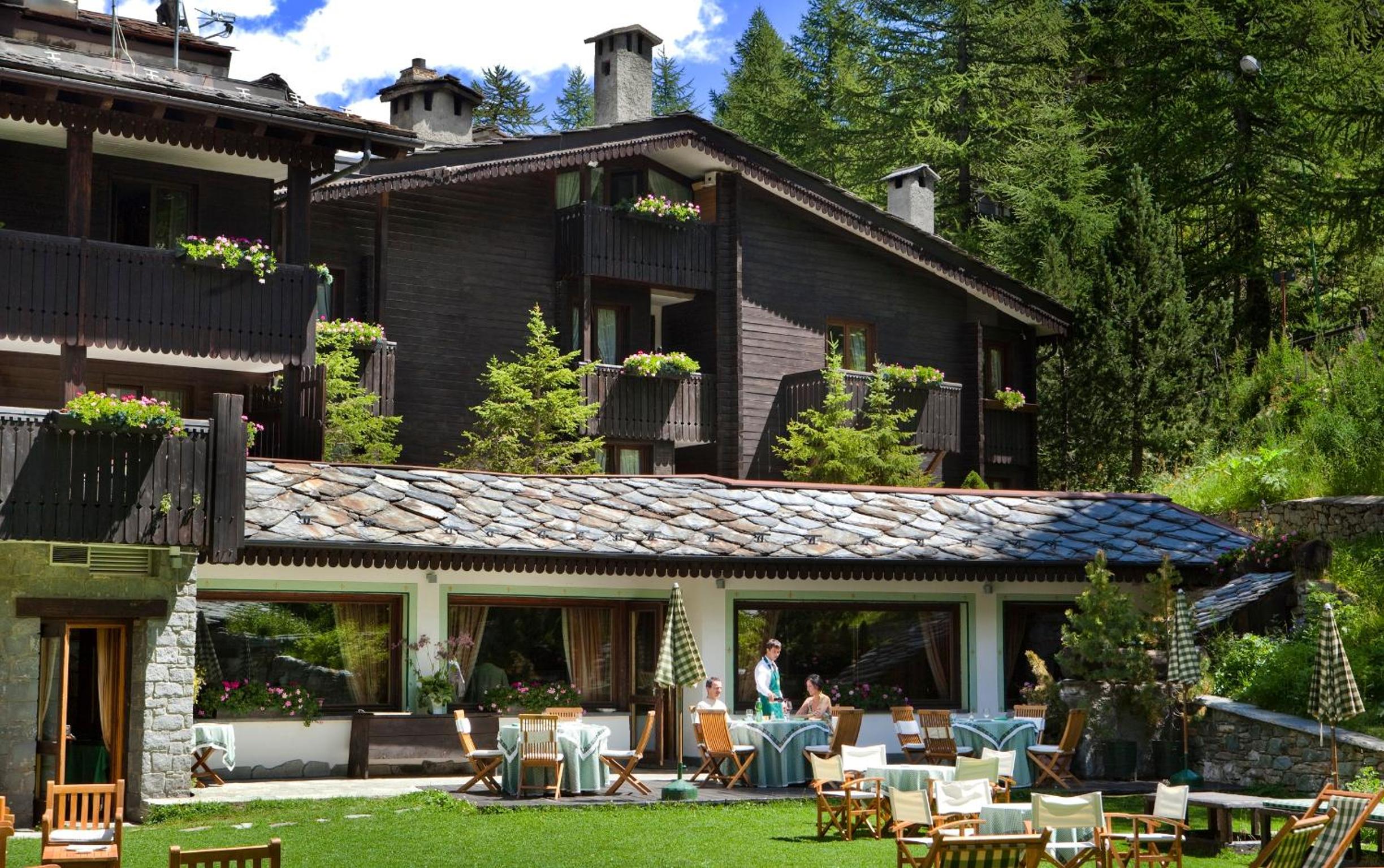 Hotel Hermitage offers a unique experience with rooms featuring private balconies that provide breathtaking panoramic views of the southern slope of Mount Cervino.