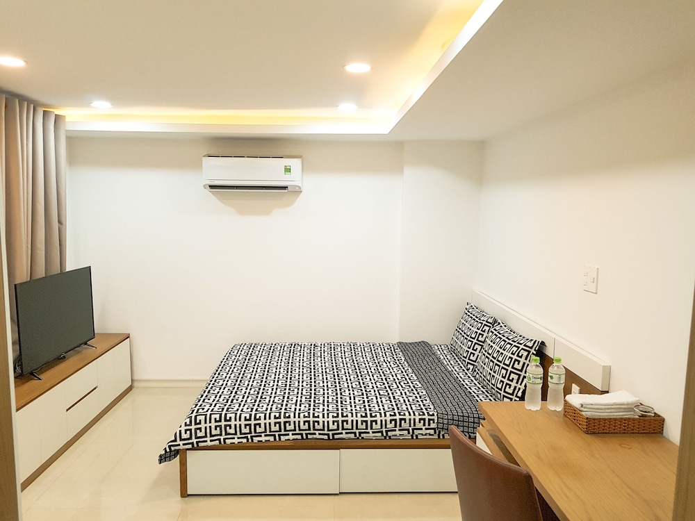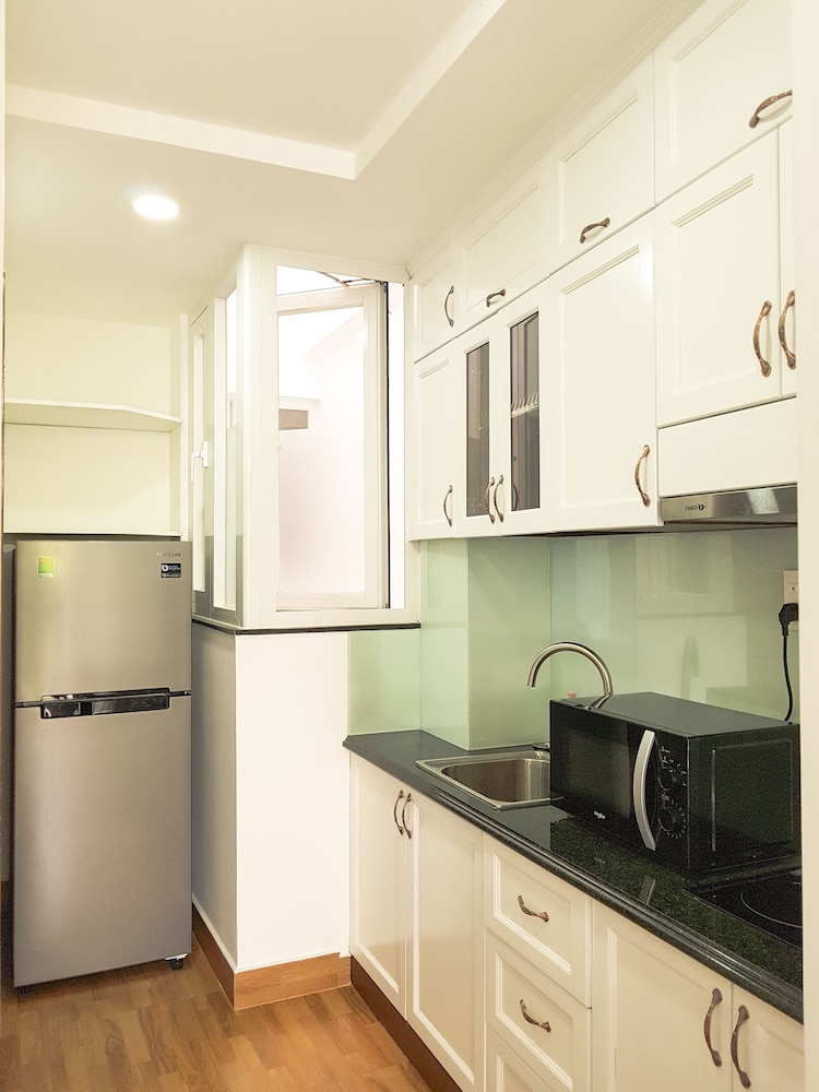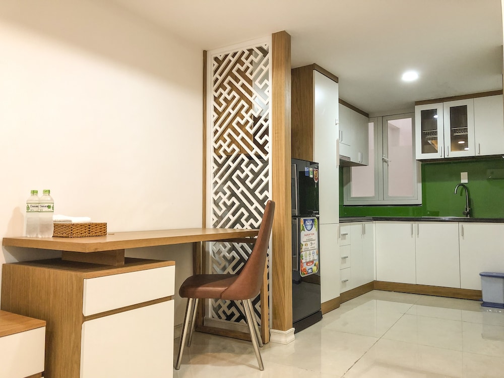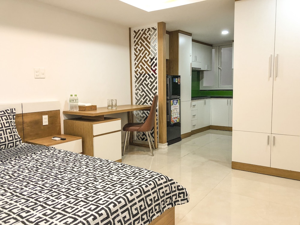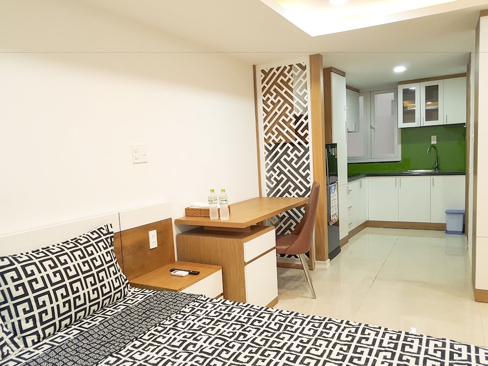 We just booked one day, and when we arrived, staff first want to take over our passport, then their manager ask him to return to us, instead of taking photo of passport and Visa. No additional information was given for the surrounding area. the service apartment is in the alley way. Then we were trying hard to find restaurant and shops. The facility is brand new, very clean as well. also have kitchen, but doesn't have any kitchenware, like cattle pot pan, bow. bed is comfortable, bathroom is very good. a lot of storage space for a hotel. but there is fatal flaw, the half door is using half transparent glass, and the light on the corridor can light up the room even you turn off the light in the room. So when you try to sleep, that is big issue, if you are sensitive to light. also the second day morning, you heard kids were screaming from the same level, which is annoying as well. overall, would not stay again.