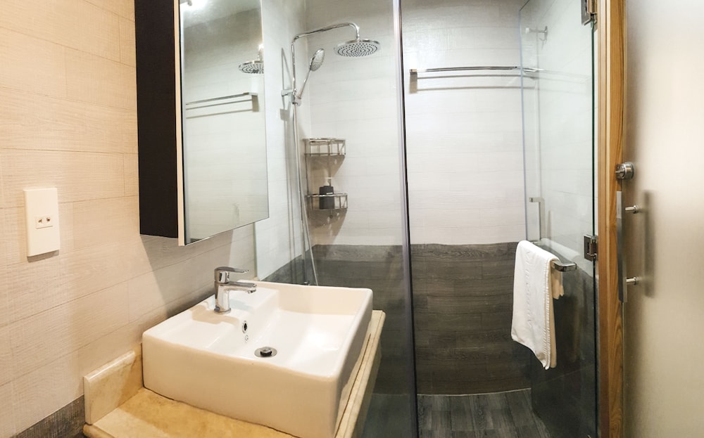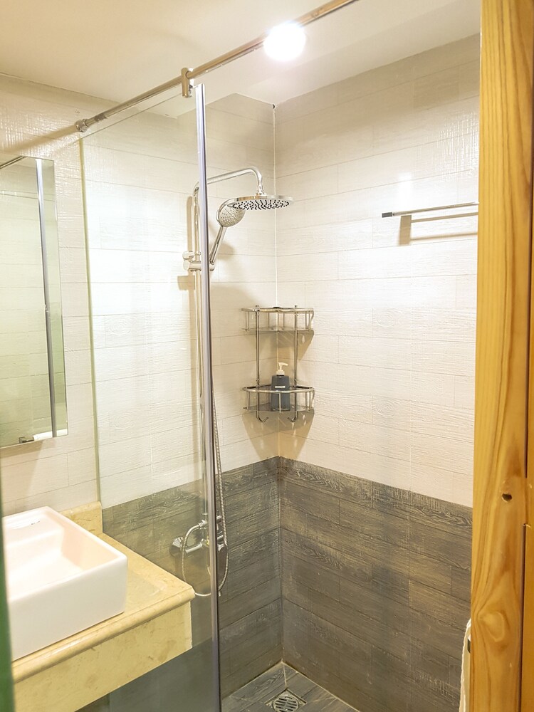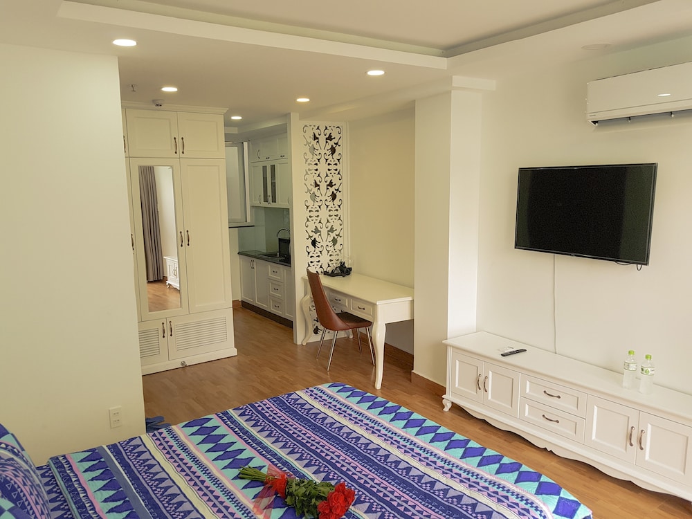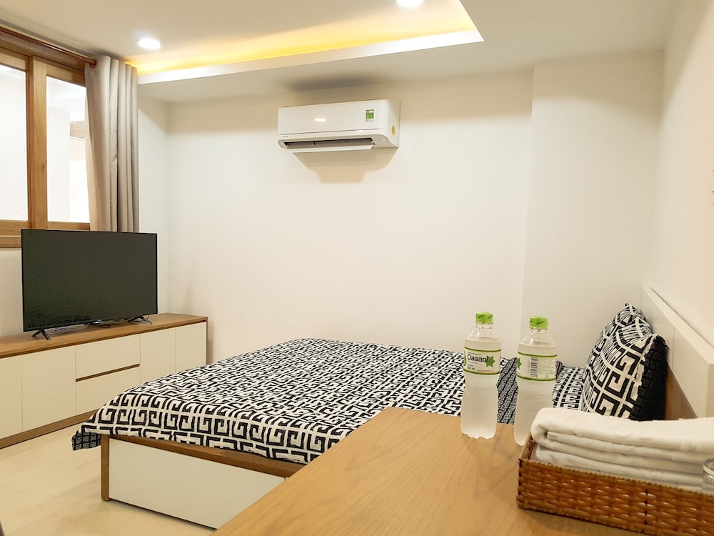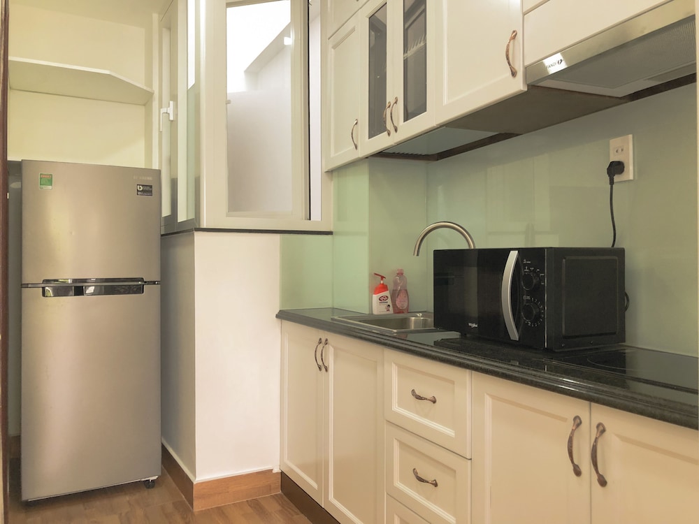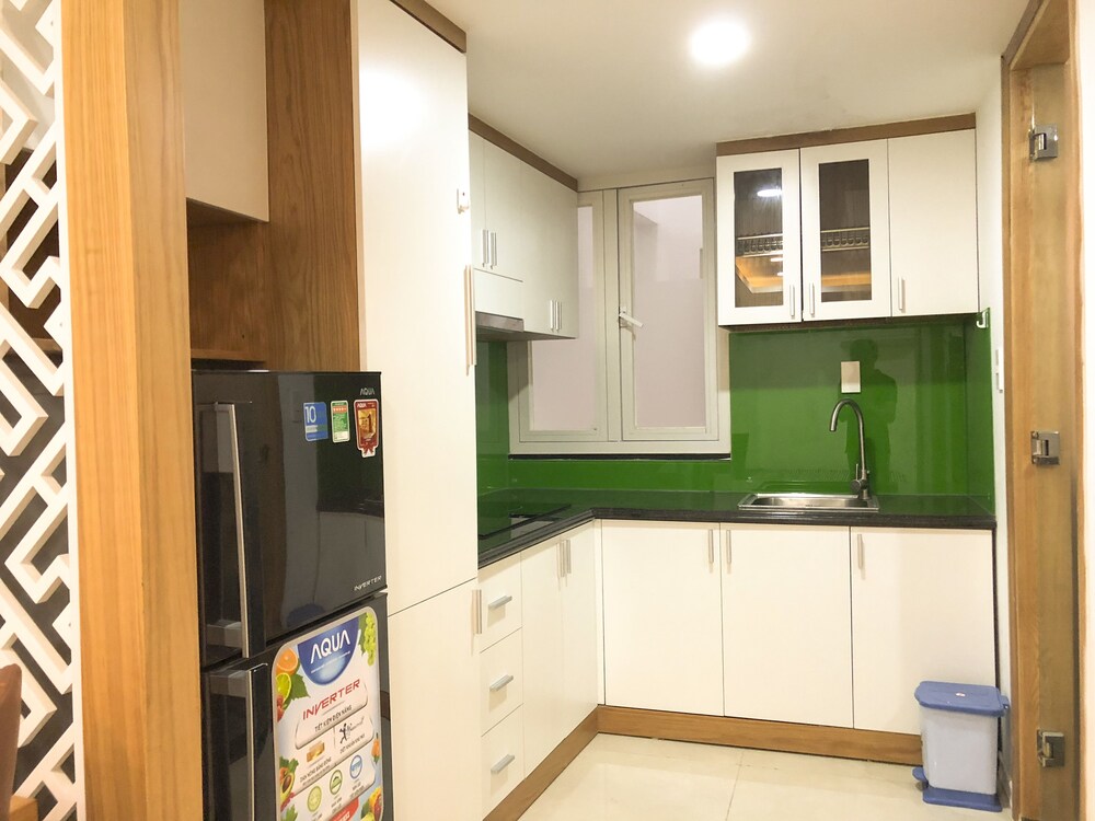 We just booked one day, and when we arrived, staff first want to take over our passport, then their manager ask him to return to us, instead of taking photo of passport and Visa. No additional information was given for the surrounding area. the service apartment is in the alley way. Then we were trying hard to find restaurant and shops. The facility is brand new, very clean as well. also have kitchen, but doesn't have any kitchenware, like cattle pot pan, bow. bed is comfortable, bathroom is very good. a lot of storage space for a hotel. but there is fatal flaw, the half door is using half transparent glass, and the light on the corridor can light up the room even you turn off the light in the room. So when you try to sleep, that is big issue, if you are sensitive to light. also the second day morning, you heard kids were screaming from the same level, which is annoying as well. overall, would not stay again.