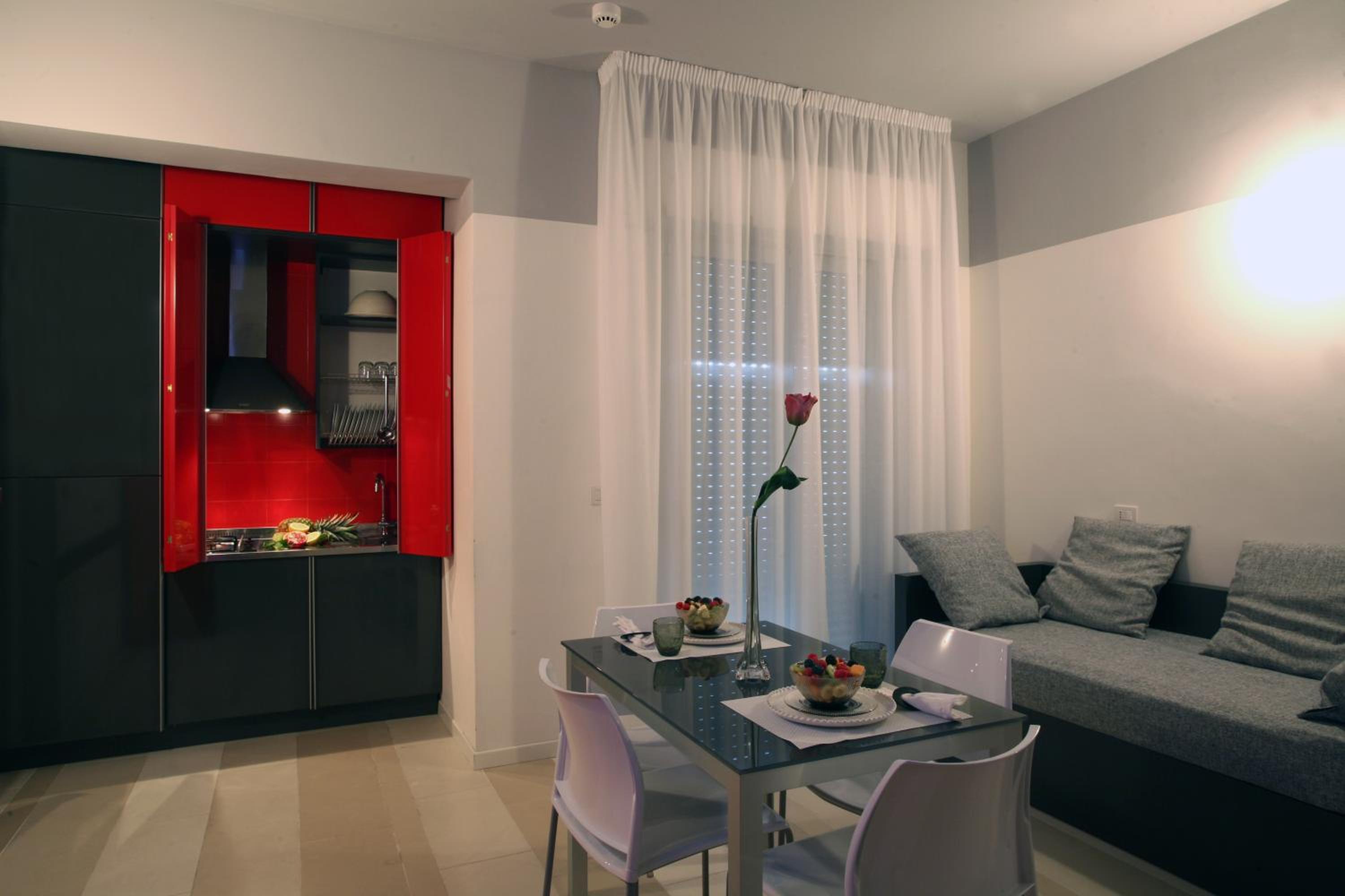 Experience comfort and convenience in the modern suites at Residence Altomare, complete with LCD TVs and complimentary Wi-Fi, ensuring a seamless and enjoyable stay for all guests.