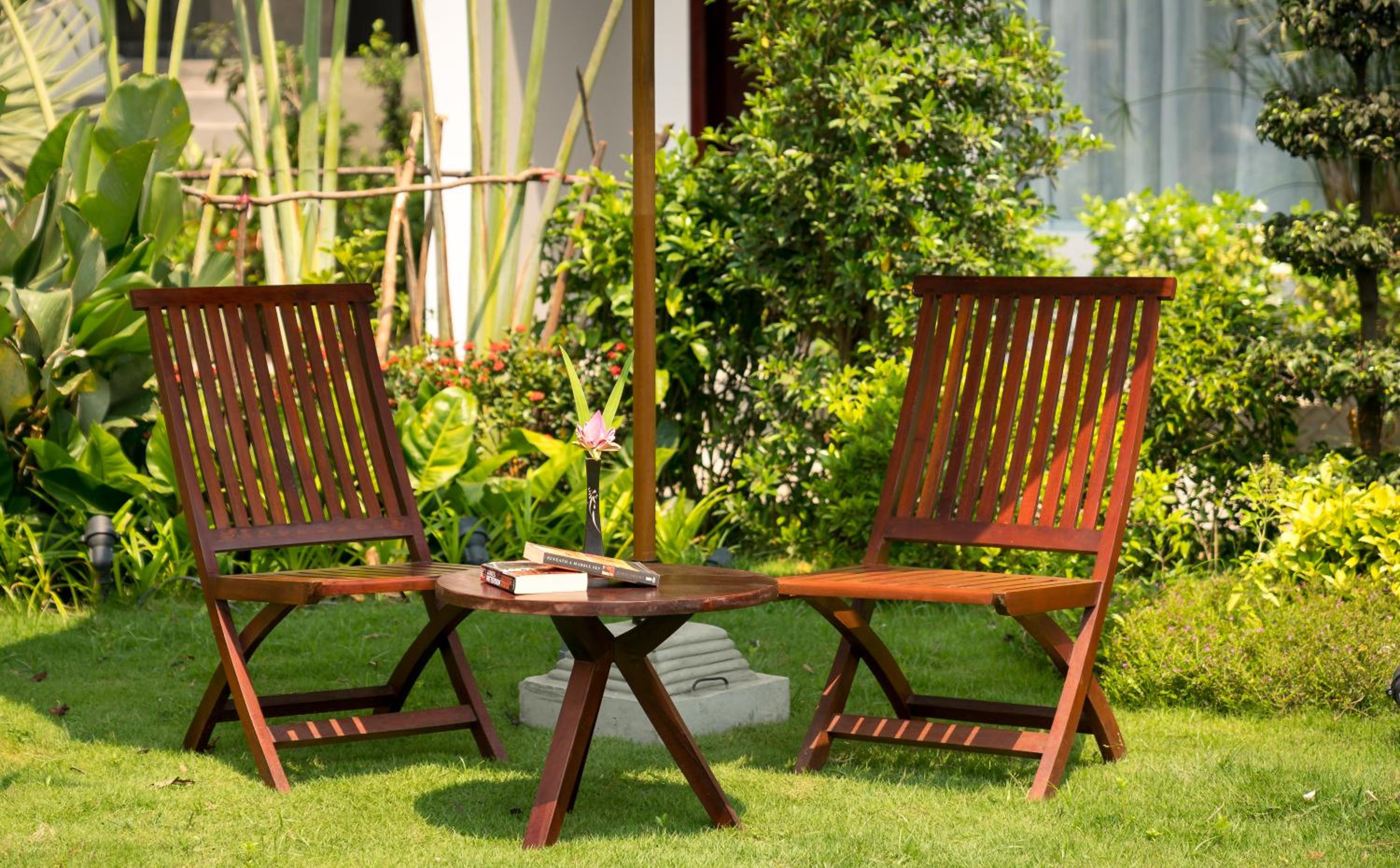 Vi anbefaler ikke man bor her, hvis du ønsker at slikke sol ved poolen. Fordi liggestole kun står i skyggen pga beplantning og der er ikke plads til at flytte solseng til en solplet.