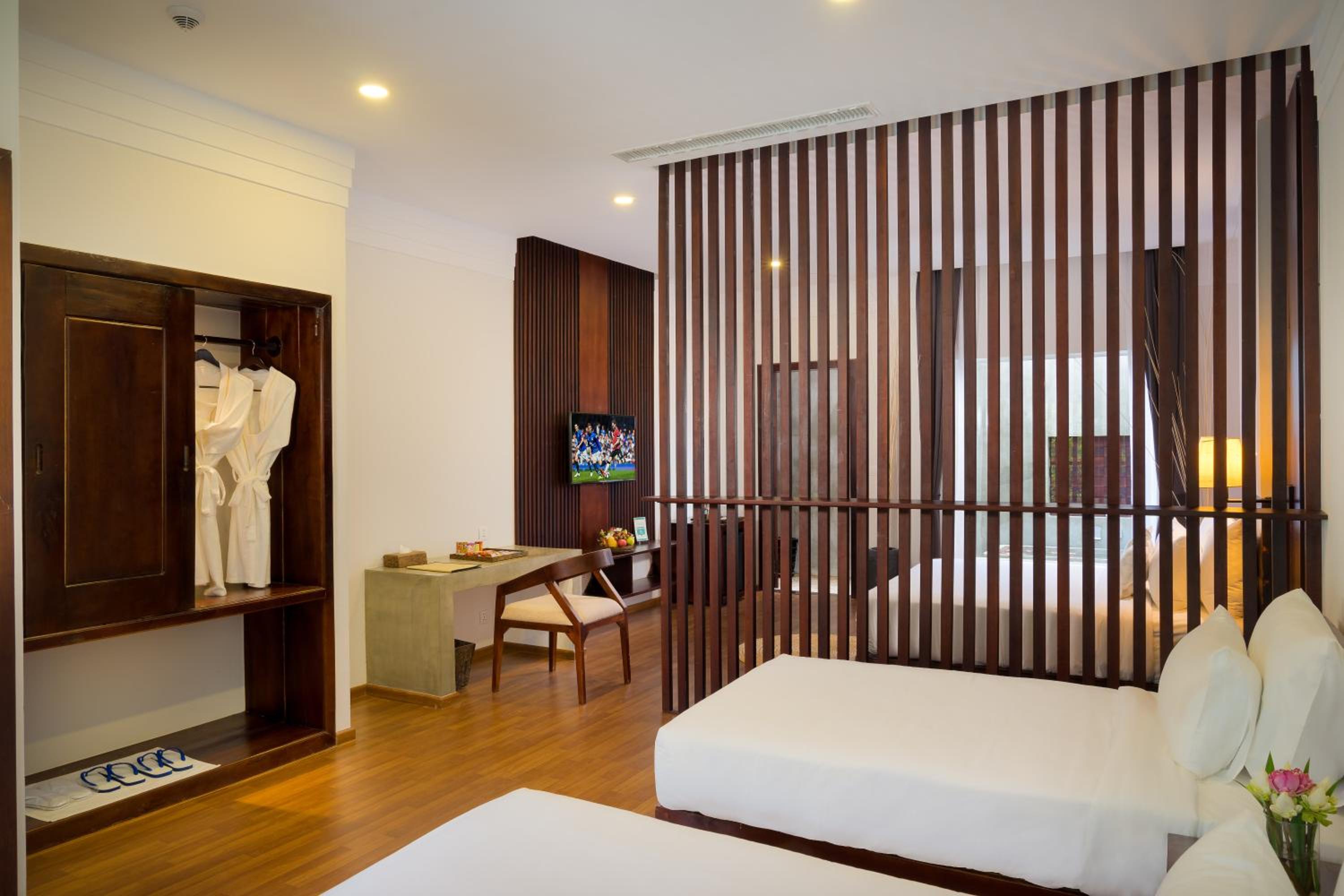 Sabara Angkor Resort & Spa in Siem Reap offers 5-star accommodation with beautifully decorated rooms featuring modern amenities and stunning pool views. Guests can enjoy the comfort of a flat-screen TV, free WiFi, and a private bathroom with a hairdryer.