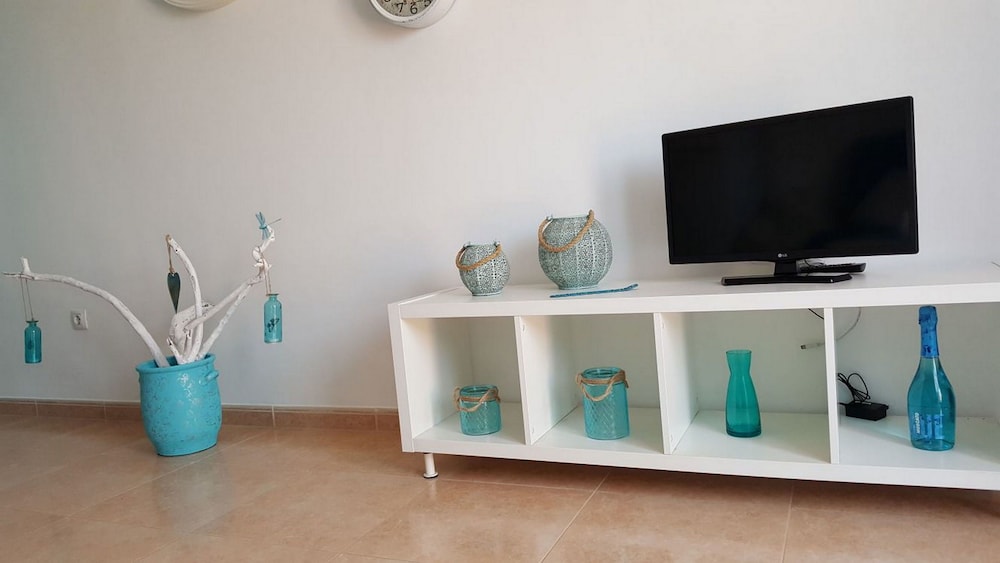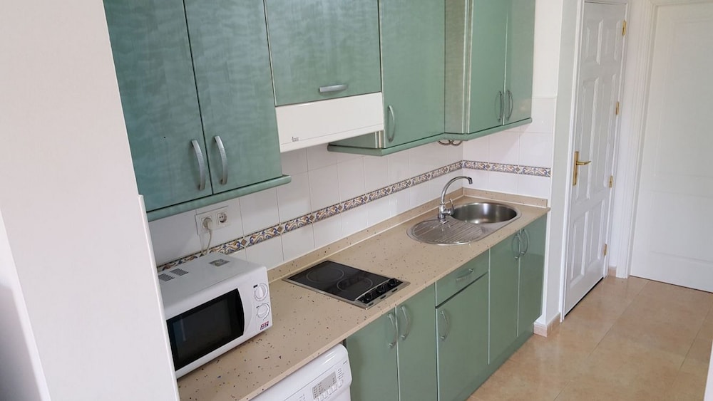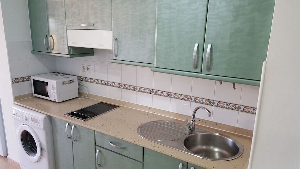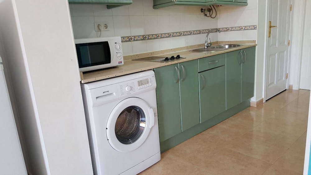 The apartment has a fridge freezer, washing machine and basic cooking facilities, for a short holiday it’s enough.
