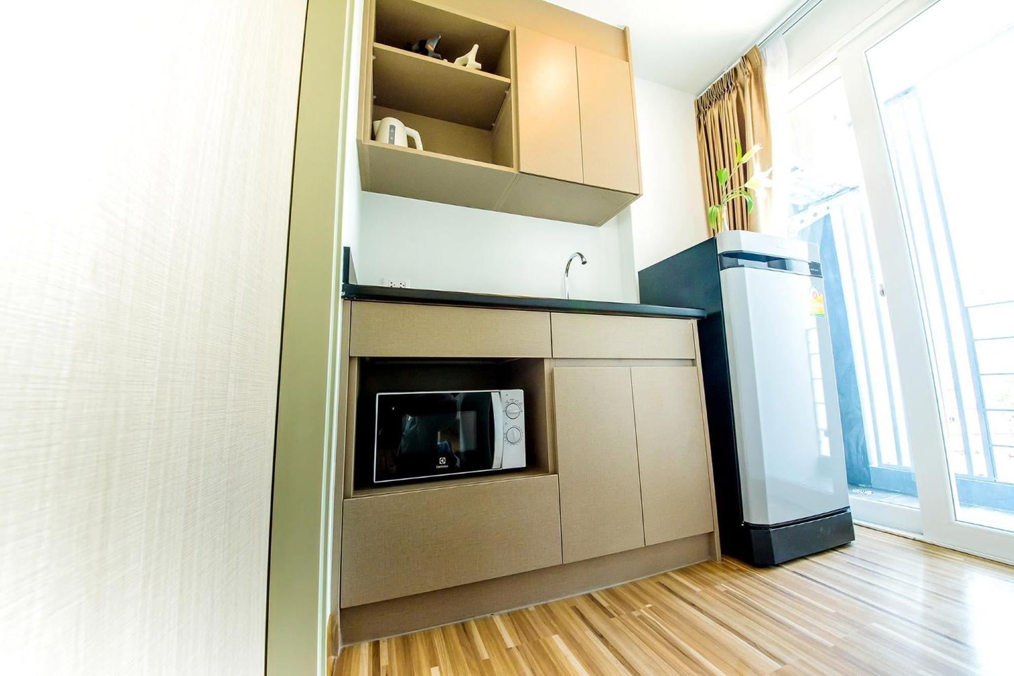 - The room we stayed was clean and well-equipped w/ microwave and 2 sets of kitchenware. The room was not so big, but it was separated into living area and bed room with air con in each area.