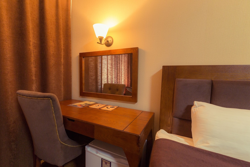 O hotel é muito agradável, quarto bom com boa calefação, café da manhã melhor que o esperado para o preço. A localização é bem perto da praça principal - o bairro pode parecer meio estranho, mas é só a primeira impressão que os prédios aoviéticos passam pra quem não está acostumado. Chegamos à noite e não tivemos problema!