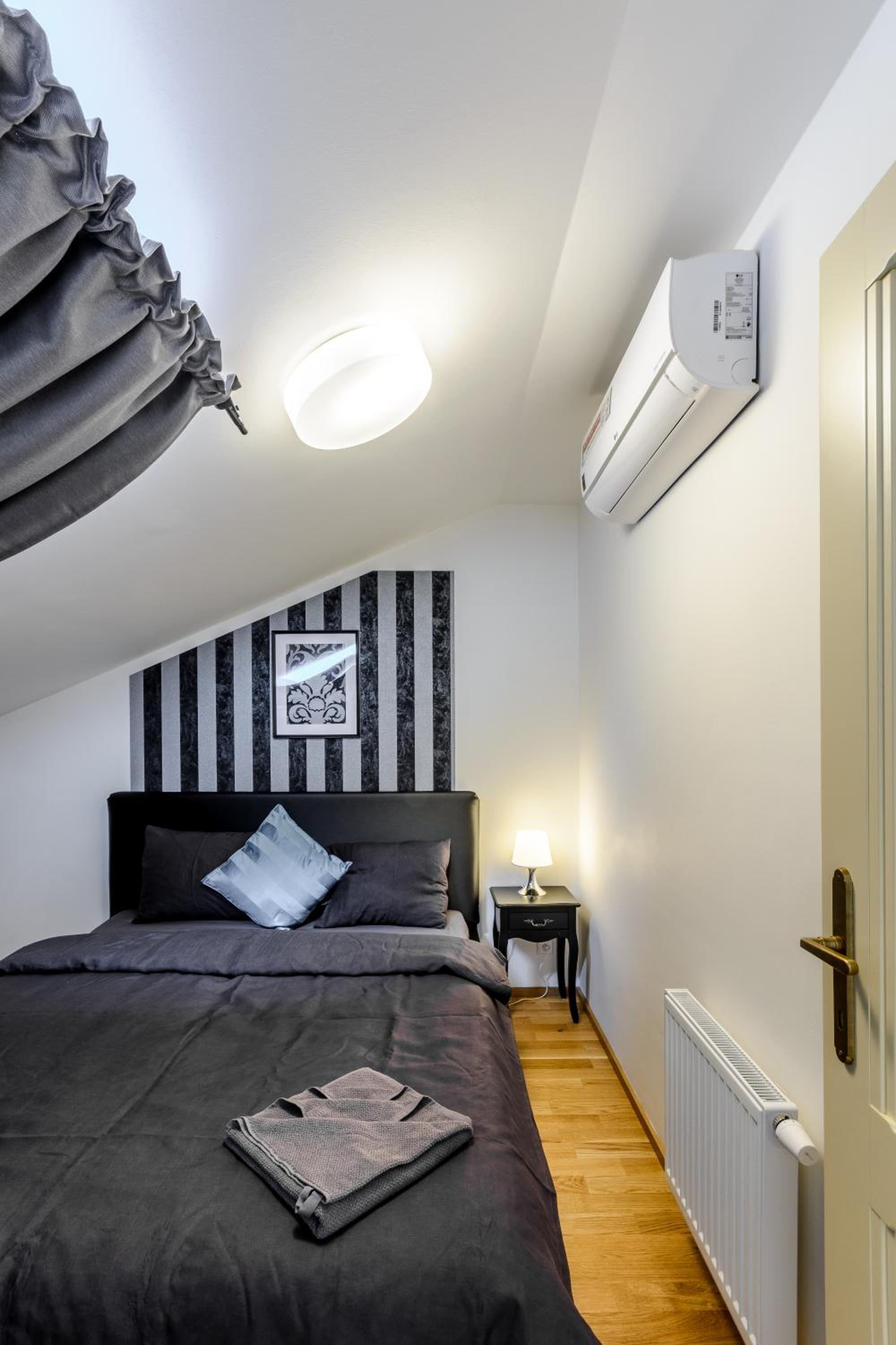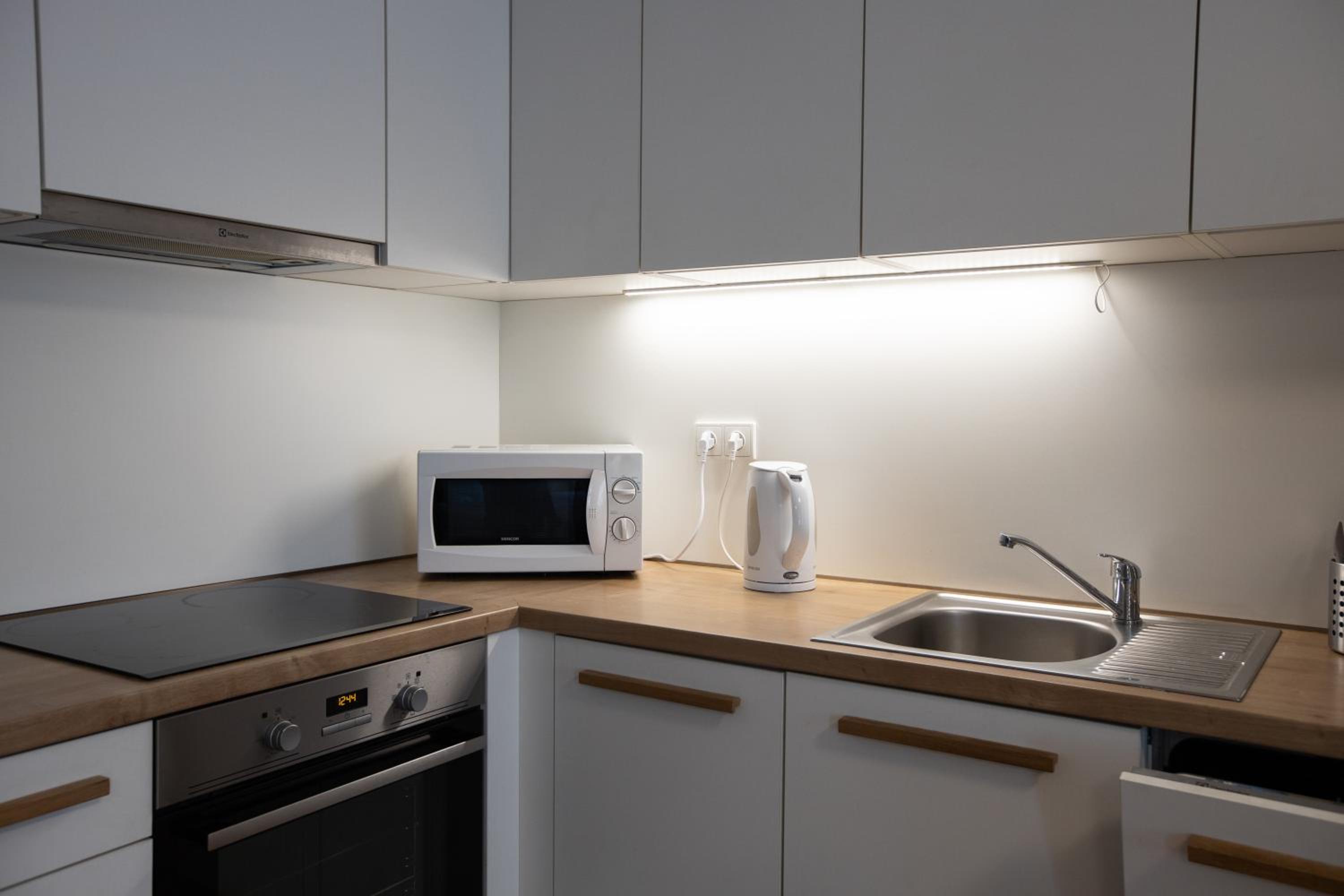 Apartment wasn't very clean. Would have been nice if there was a living area where you could chill. There were no curtains in two of the bedrooms. Small balcony where there was a tea cup with cigarette butts in it. Pictures on booking.com didn't look anything like the apartment. Freezer door wouldn't shut. Needed defrosted. Cooker was disgusting.