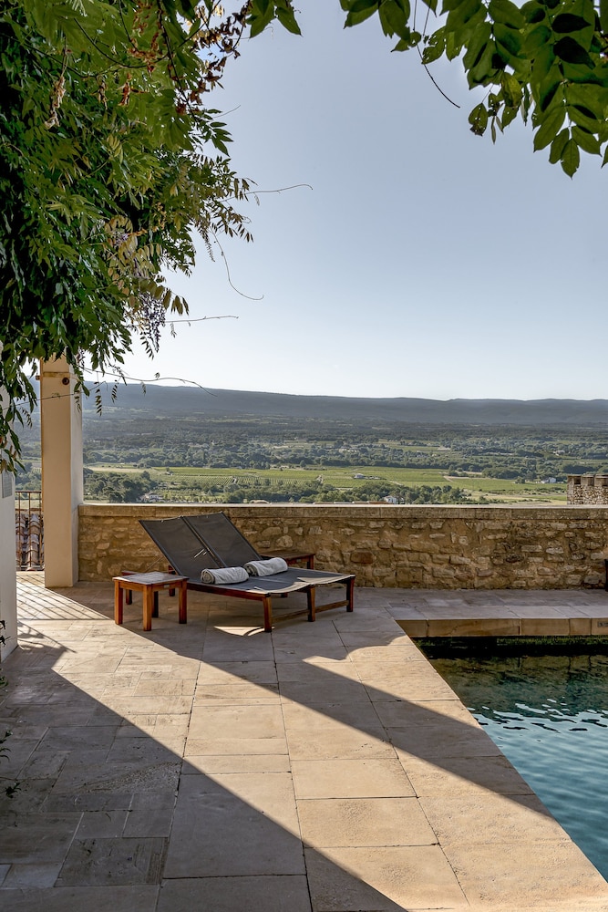 Views, pool, electric bike rental can ride into the nearby town. Have to go to Le Belvedere restaurant in nearby town.