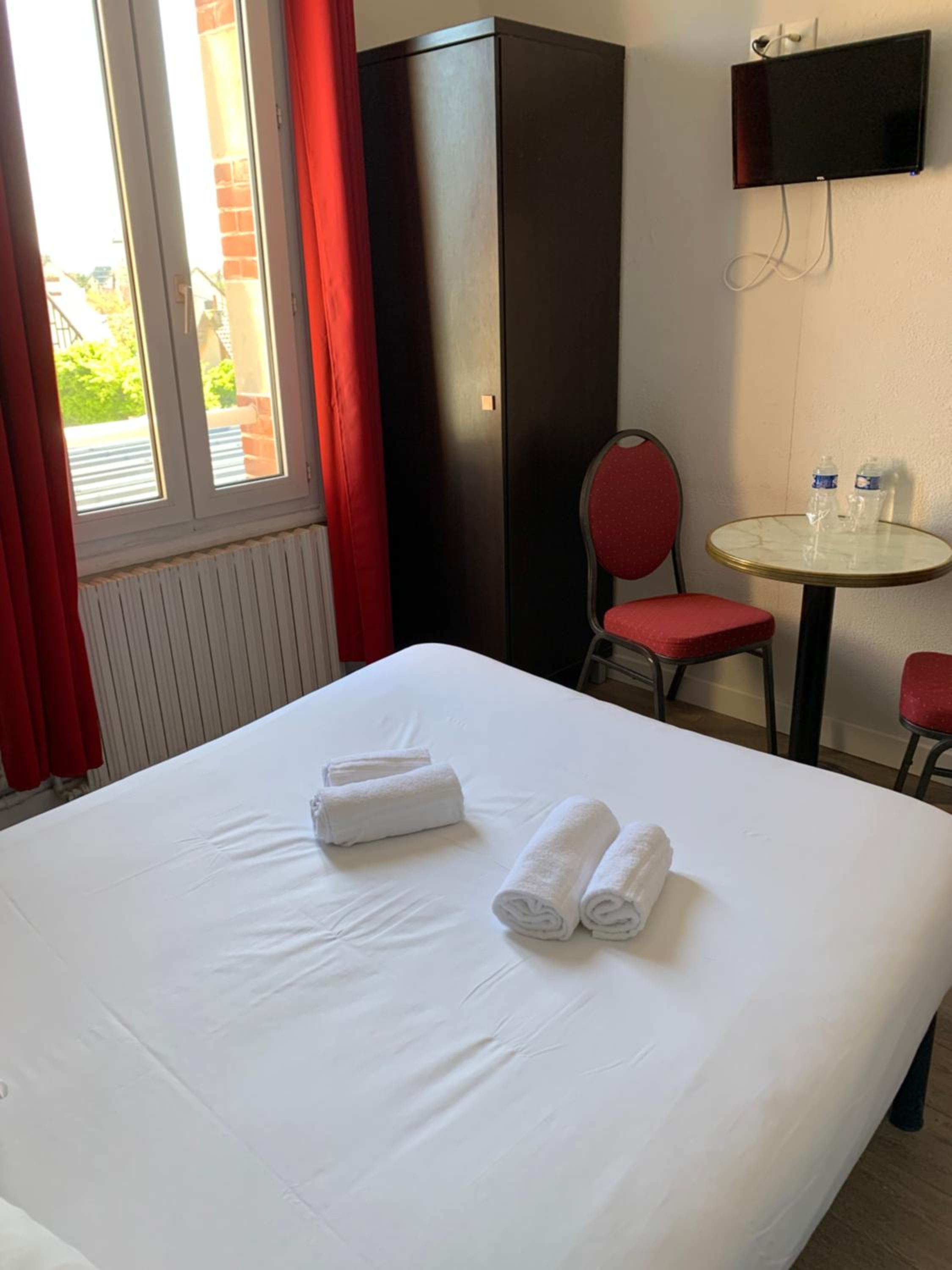 Chambre correct mais déco un peu vieillotte et une bouilloire électrique serait un plus pour un petit café ou thé lors du séjour.