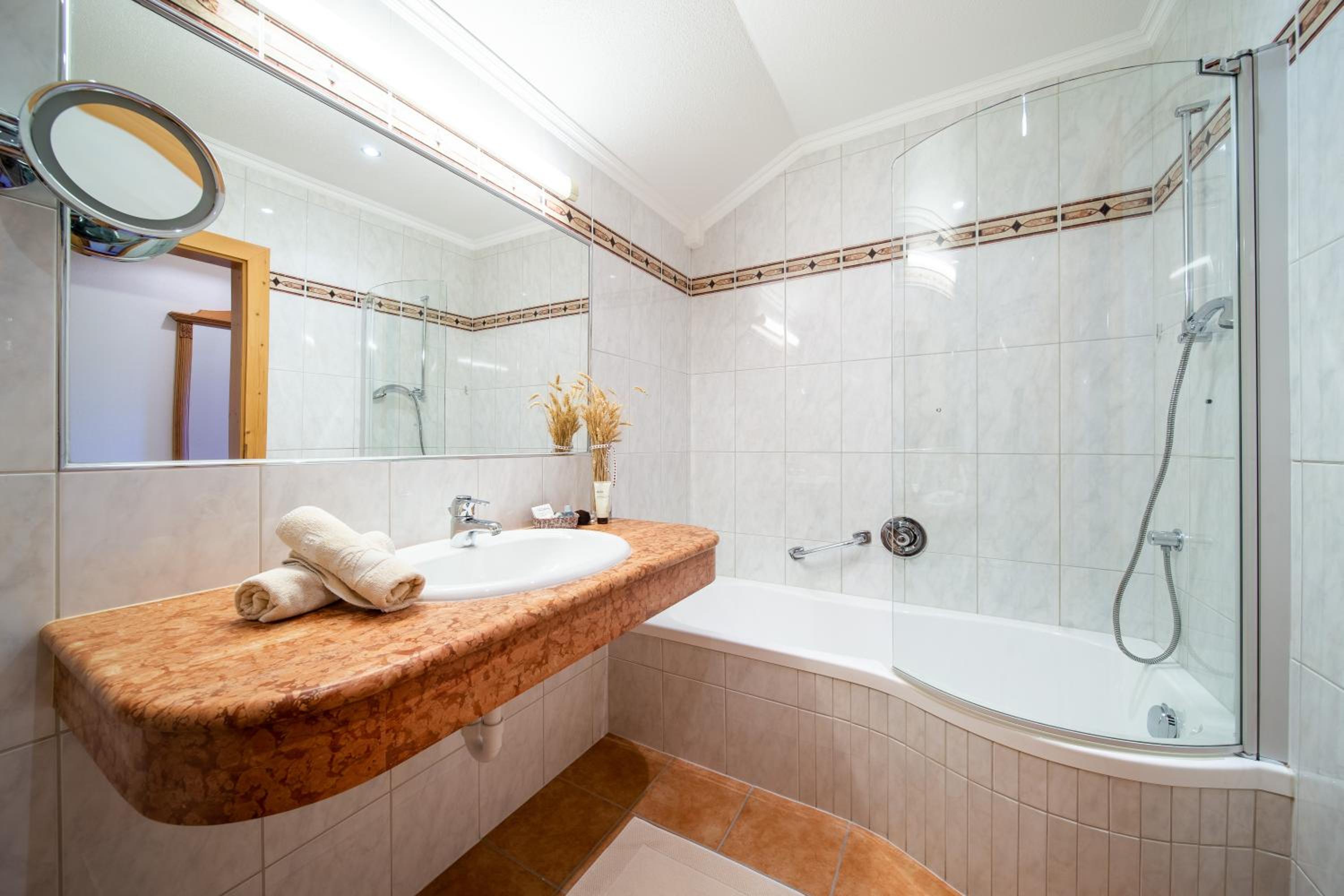 Wir haben sofort gemerkt, dass das ein von der Familie geführtes Hotel ist. Es wurde uns jeder Wunsch erfüllt. Das Frühstück als auch das 5-Gänge-Abendmenue war herrvorragend. Der neu eröffnete Wellnessbereich ist super schön.