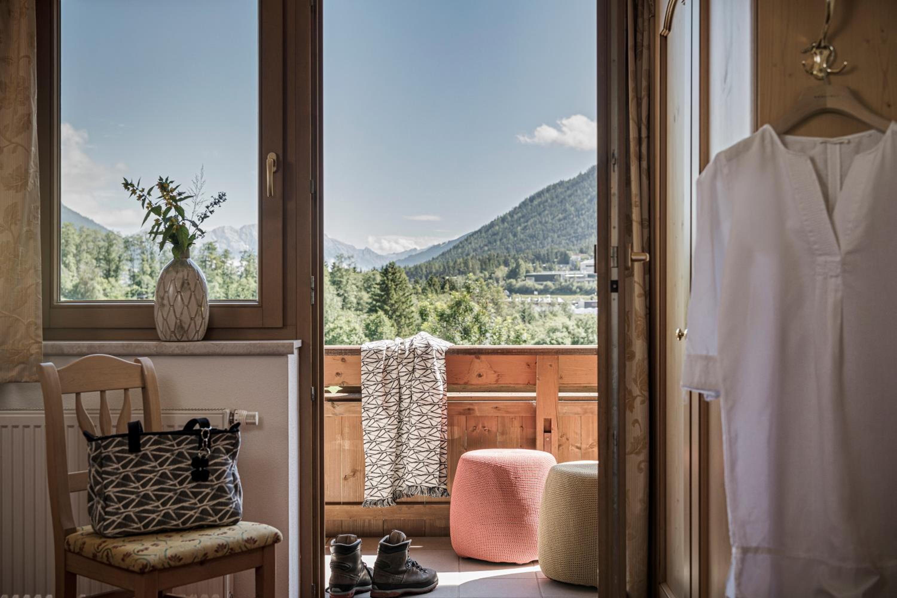 Great balcony views / food is all locally sourced bio / welcoming staff / 25 mins drive to Stubai Gletscher / small but adequate swimming pool