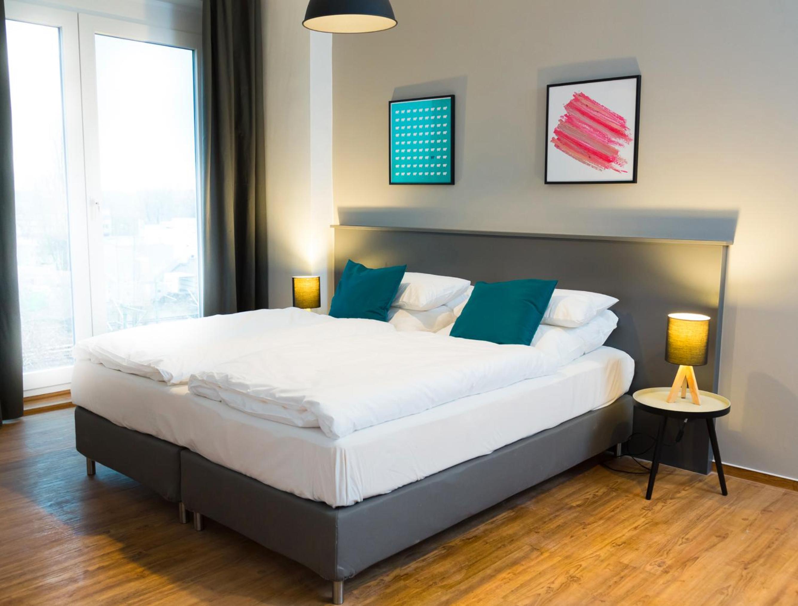 Experience the perfect blend of style and comfort in our modern industrial style apartments. Each spacious unit is designed to provide you with a luxurious and cozy stay, complete with a fully-equipped kitchen, balcony, and rain dance shower. The luxury box-spring beds ensure a restful night's sleep, while amenities like free WiFi and a 43-inch LCD TV add convenience to your stay.